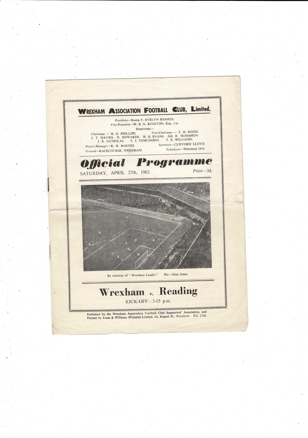 1962/63 Wrexham v Reading Football Programme