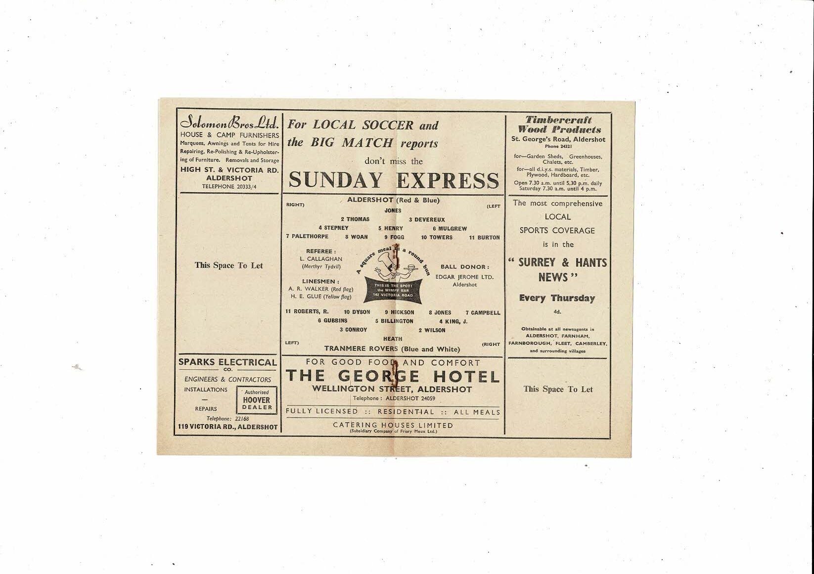1963/64 Aldershot v Tranmere Rovers Football Programme