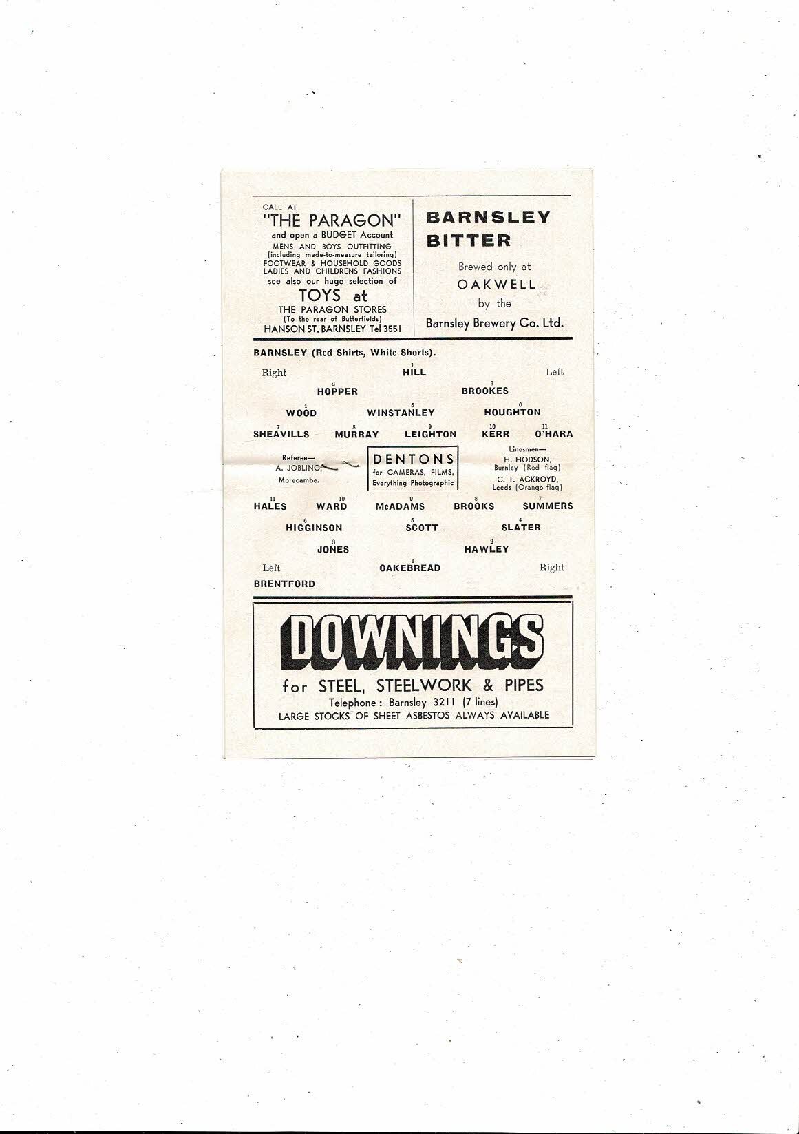 1963/64 Barnsley v Brentford Football Programme