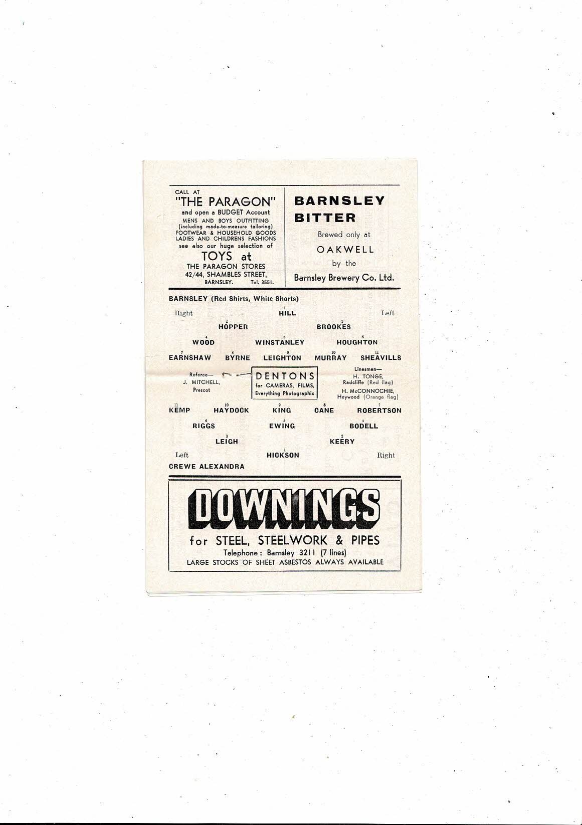 1963/64 Barnsley v Crewe Alexandra Football Programme