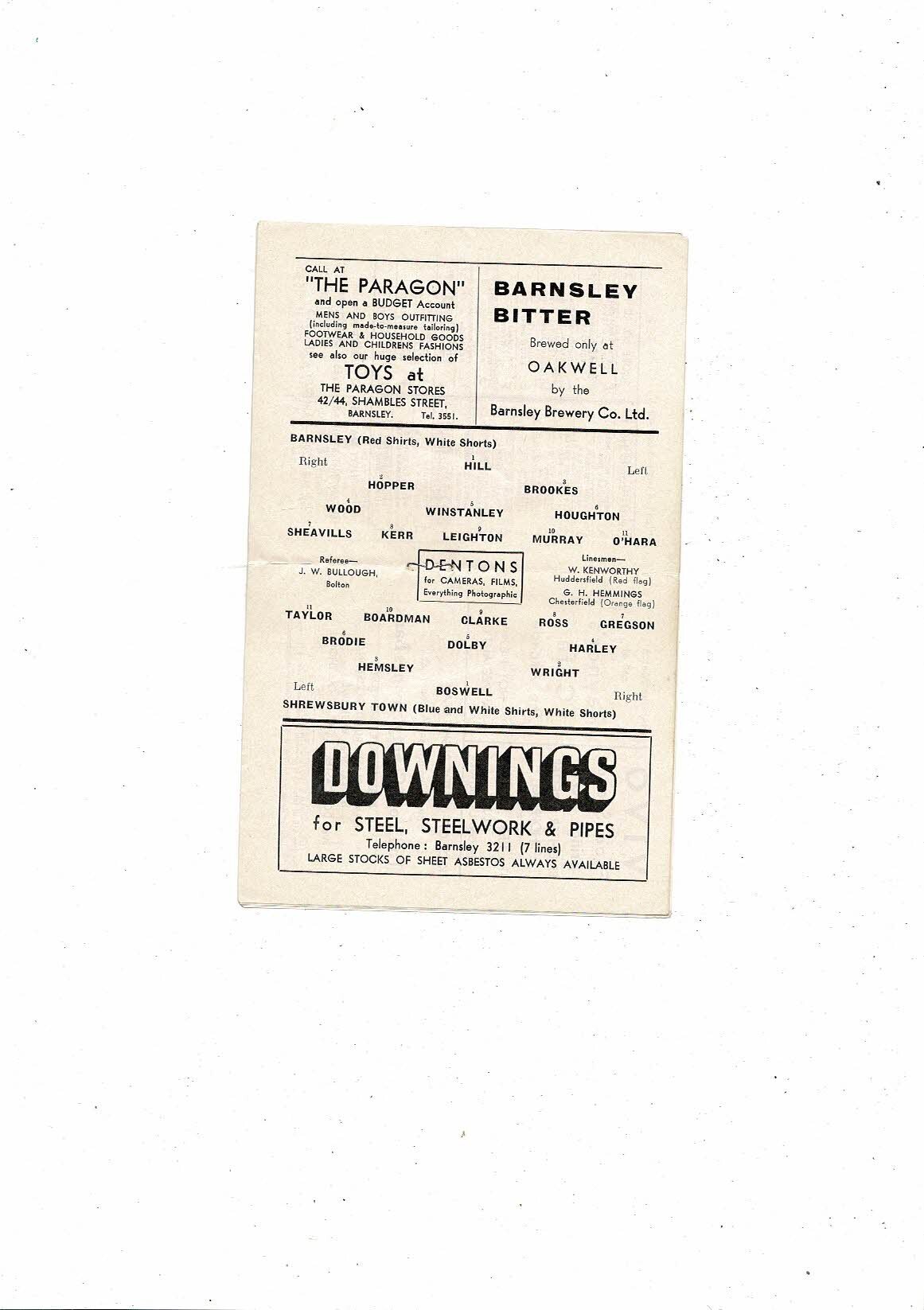 1963/64 Barnsley v Shrewsbury Town Football Programme