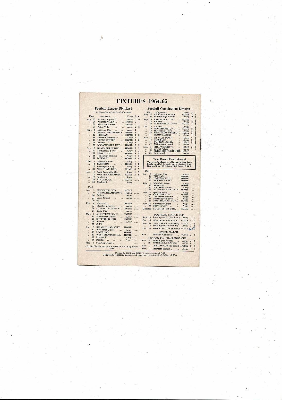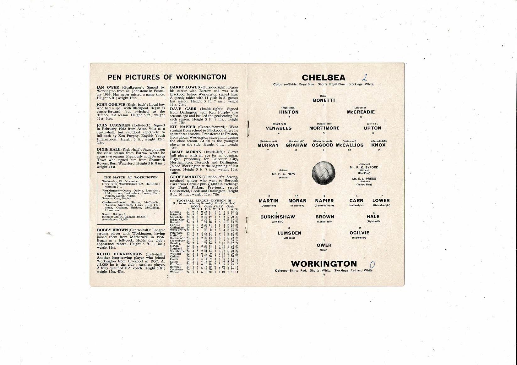 1964/65 Chelsea v Workington League Cup Replay Football Programme