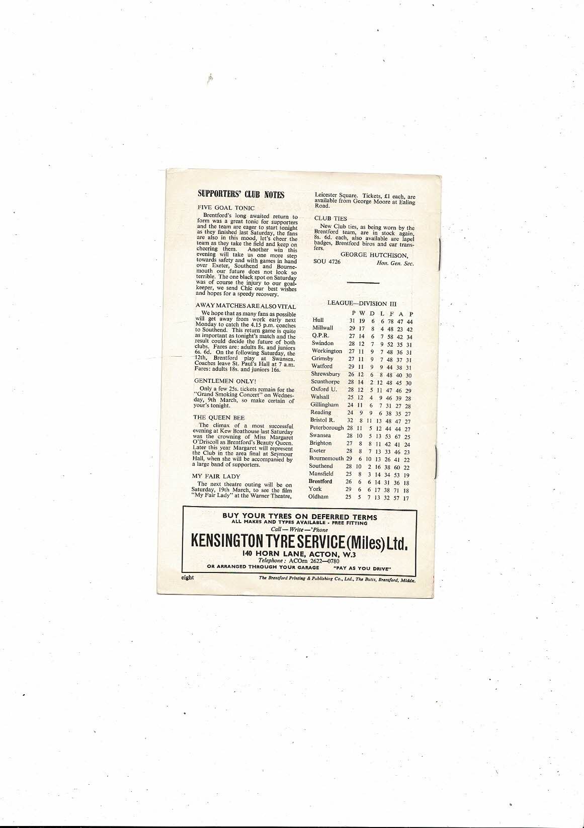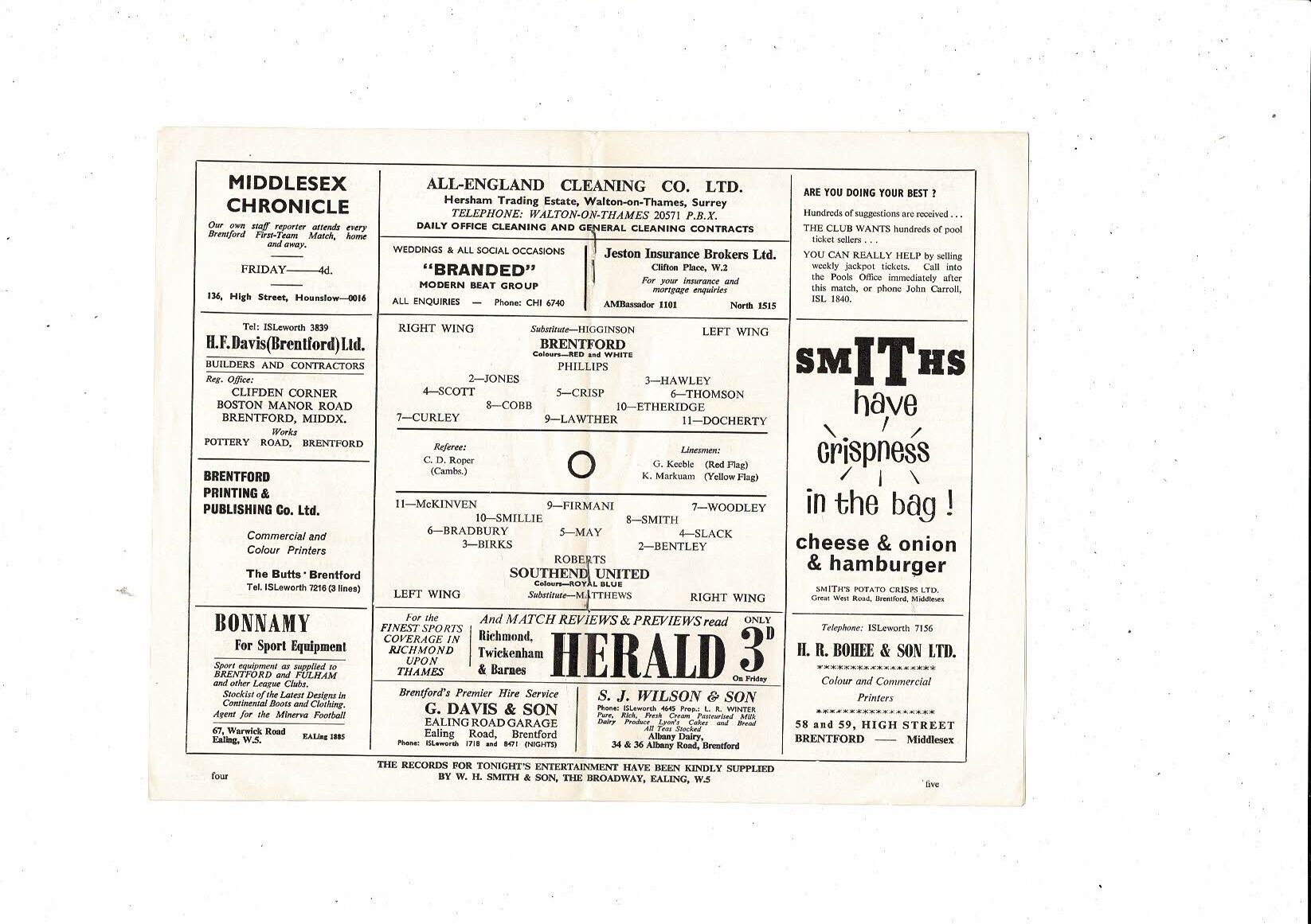 1965/66 Brentford v Southend United Football Programme