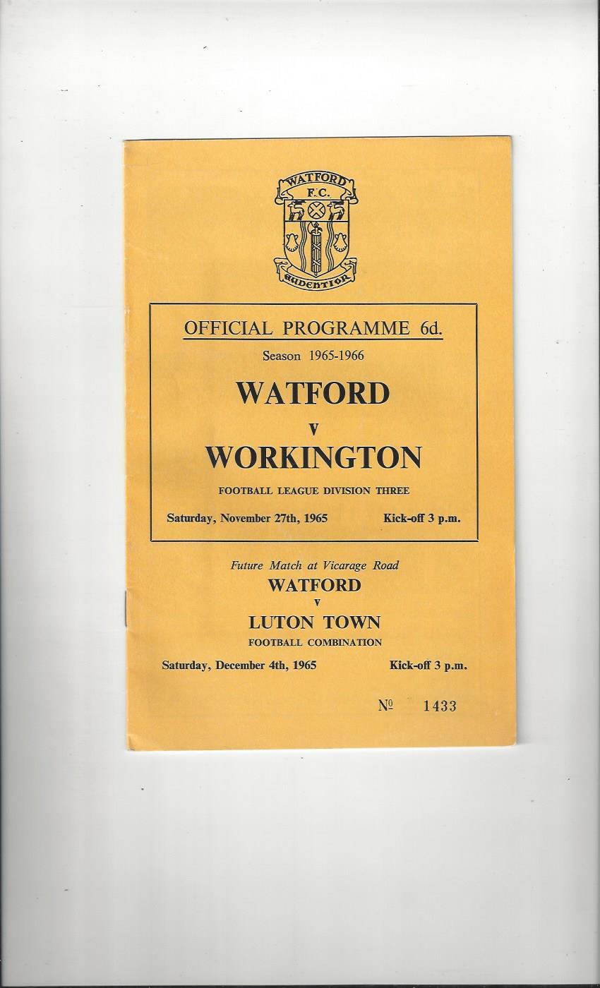 1965/66 Watford v Workington Football Programme