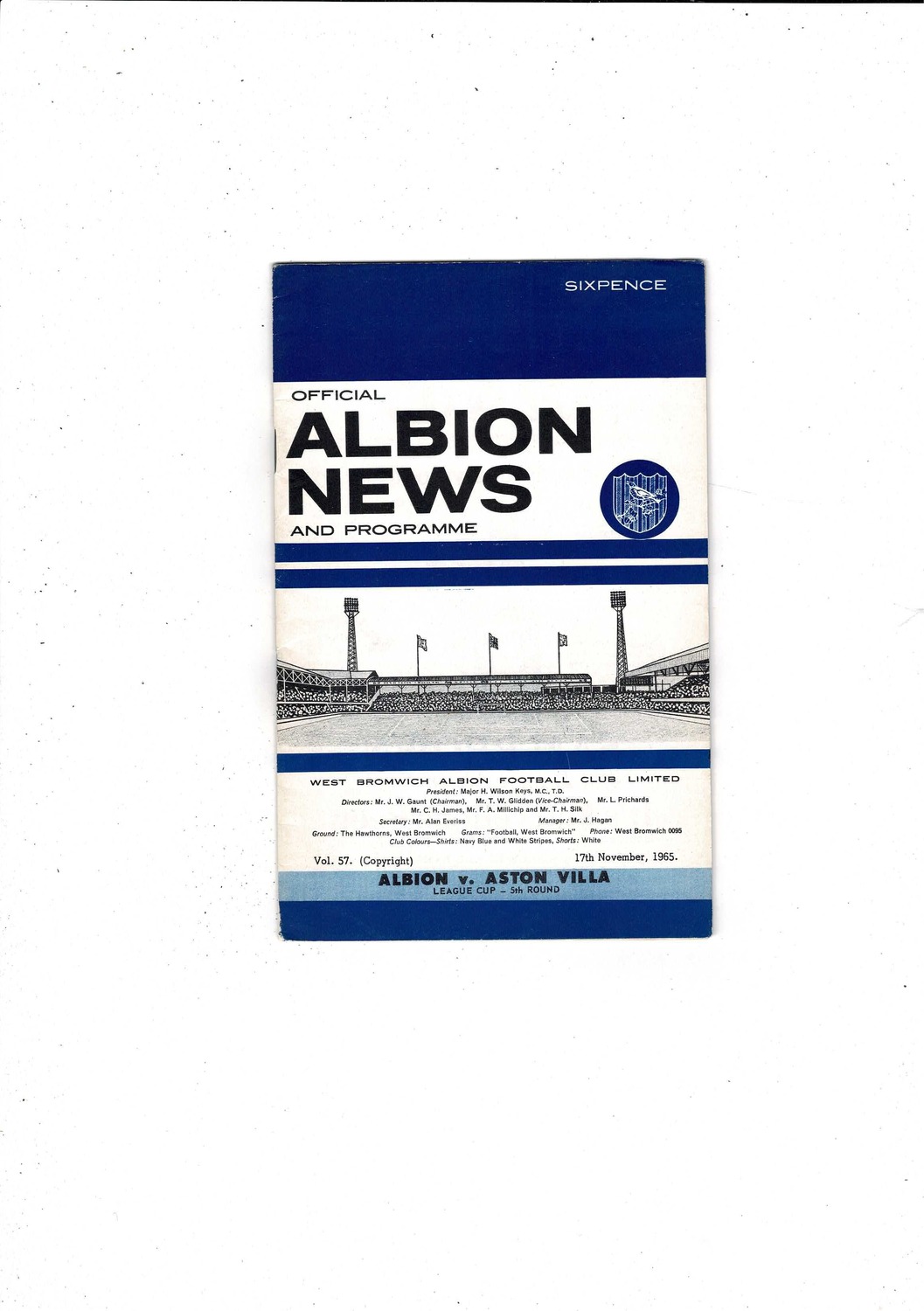 1965/66 West Bromwich Albion v Aston Villa League Cup Football Programme + League Review