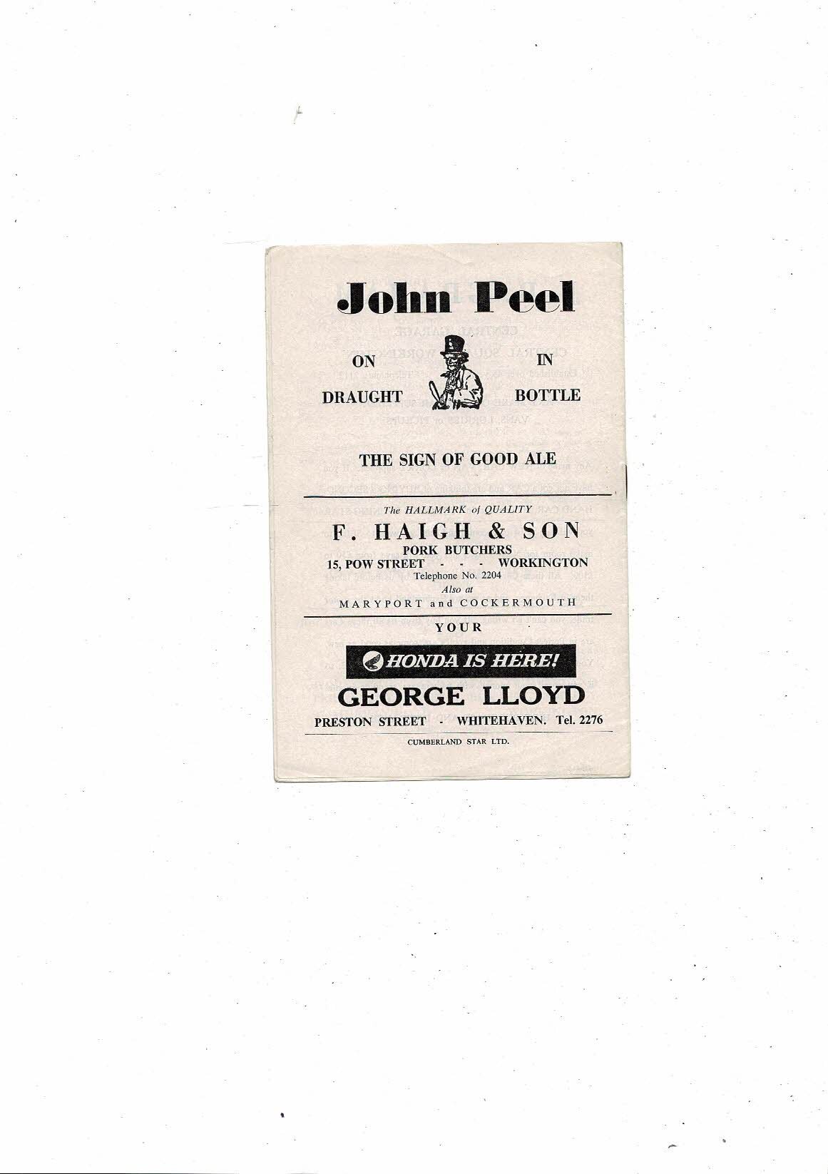1965/66 Workington v Millwall Football Programme