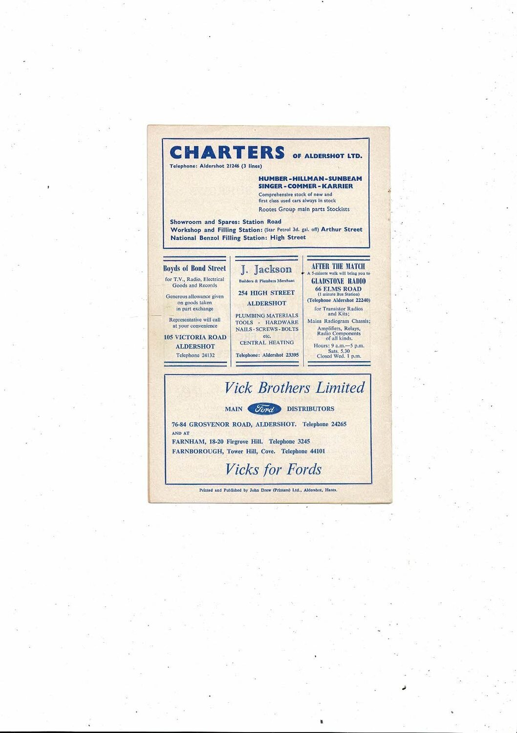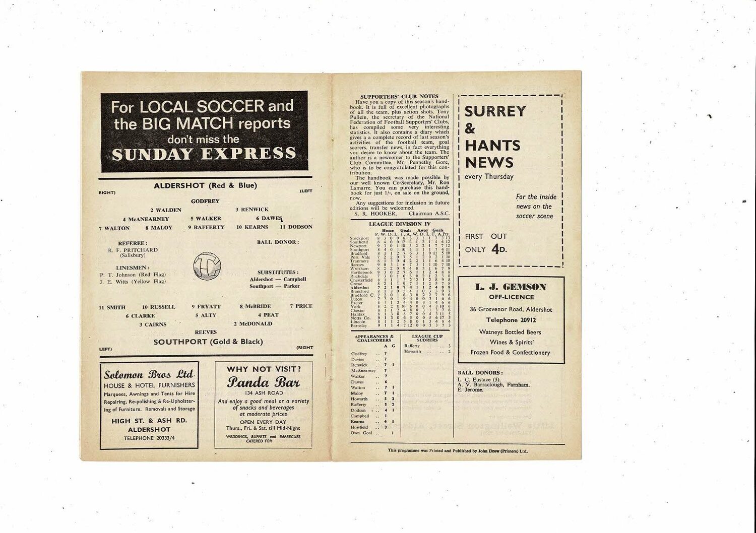1966/67 Aldershot v Southport Football Programme