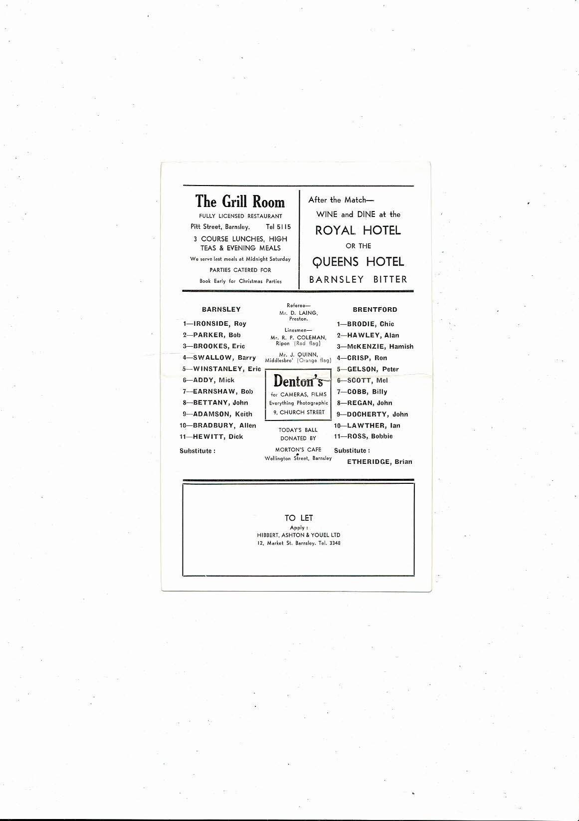 1966/67 Barnsley v Brentford Football Programme