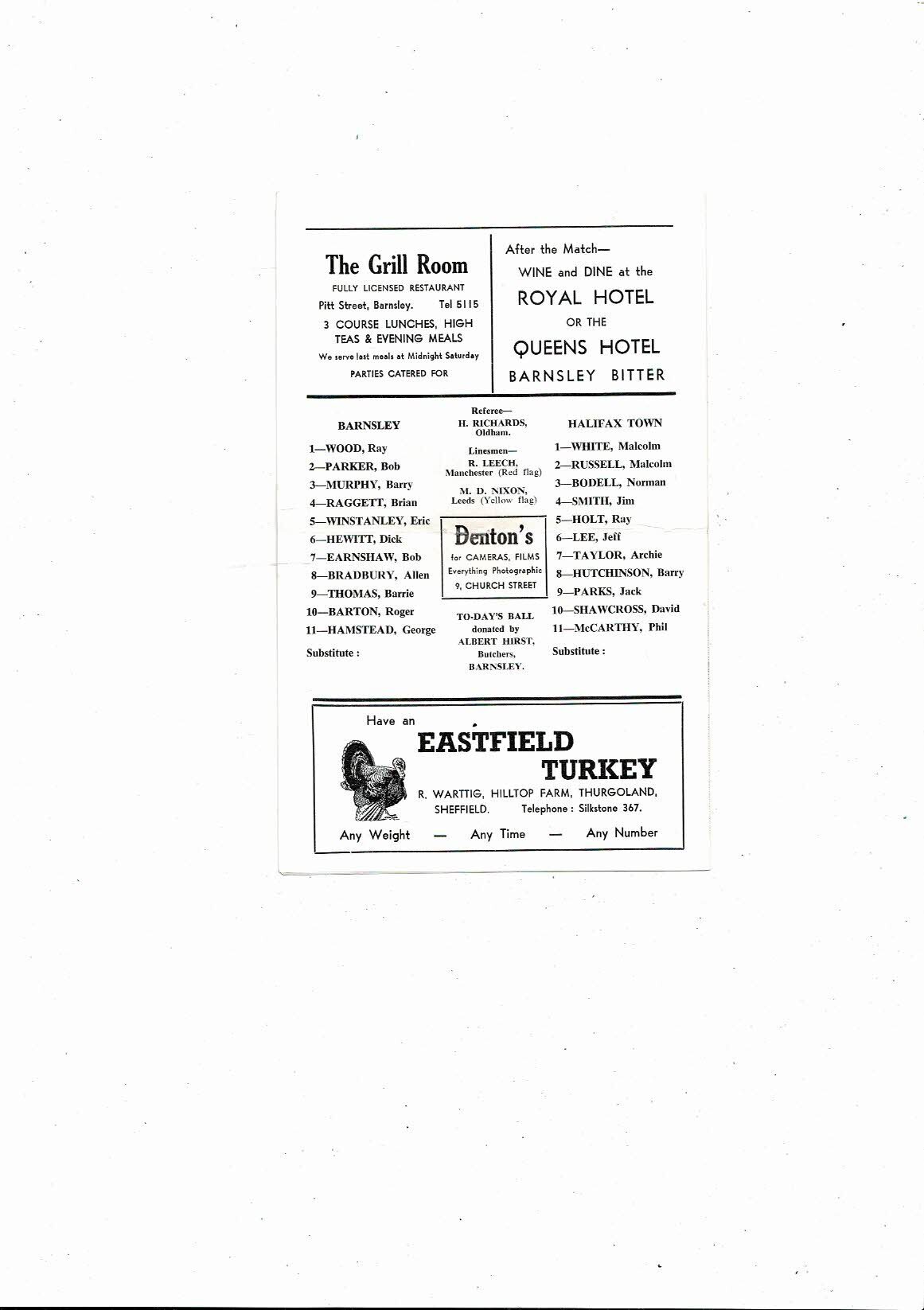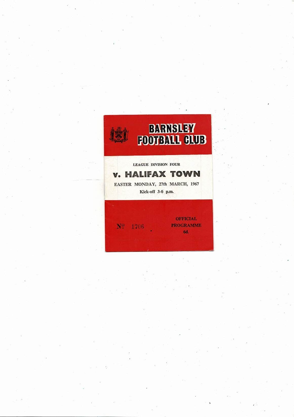 1966/67 Barnsley v Halifax Town Football Programme