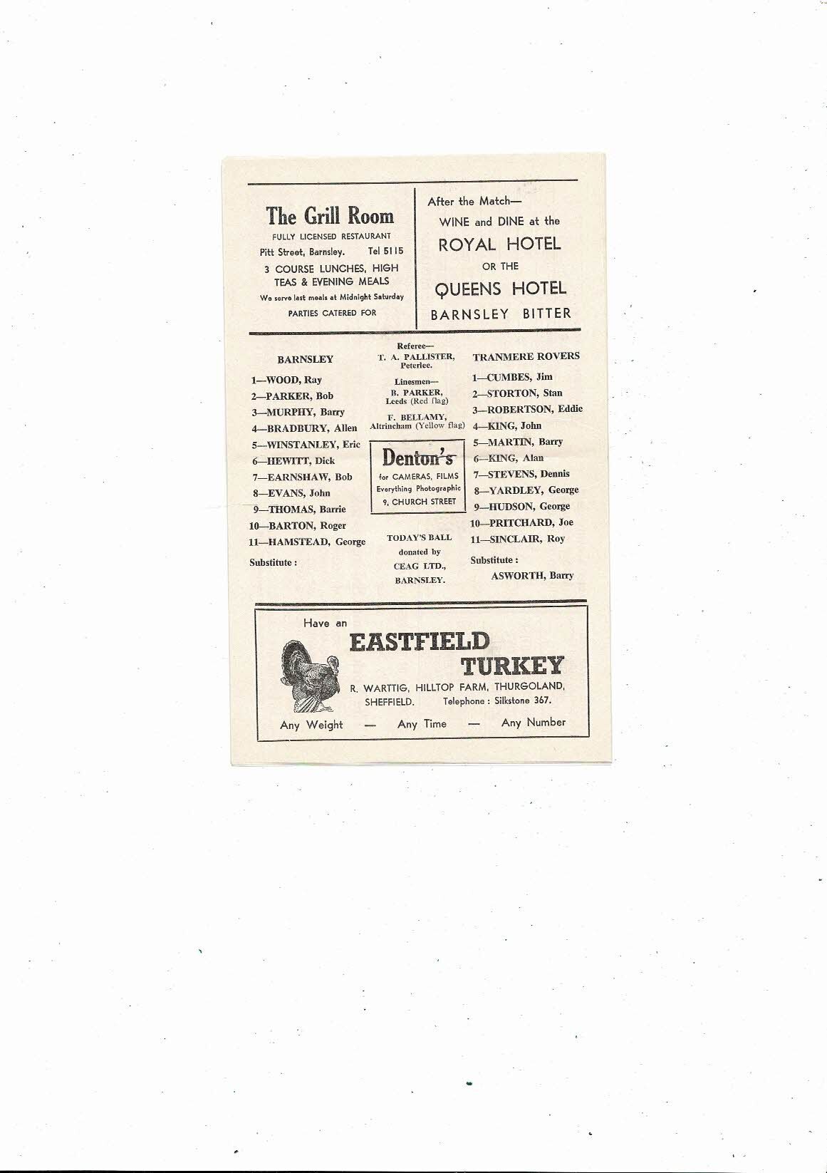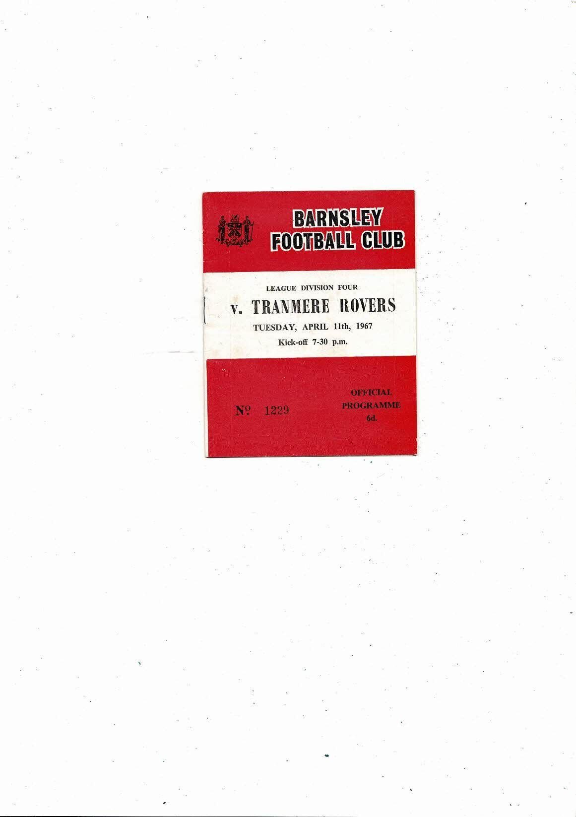 1966/67 Barnsley v Tranmere Rovers Football Programme