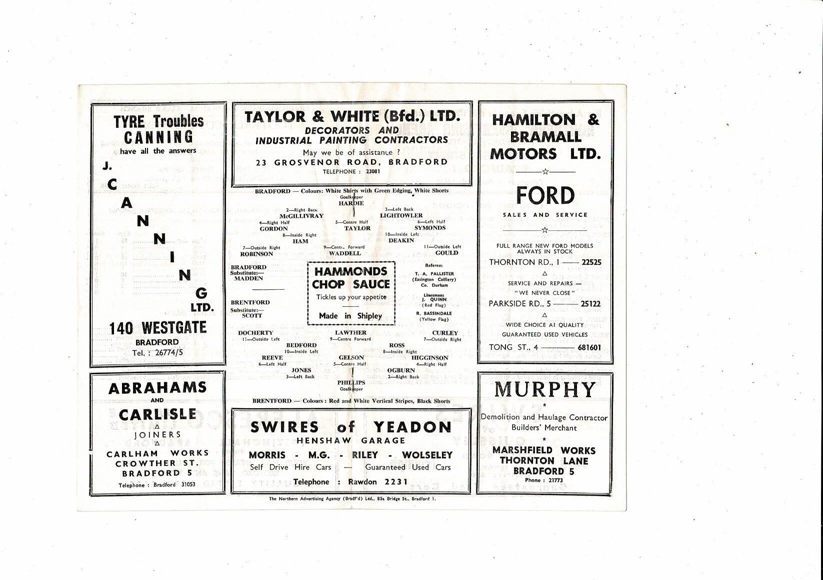 1966/67 Bradford Park Avenue v Brentford Football Programme