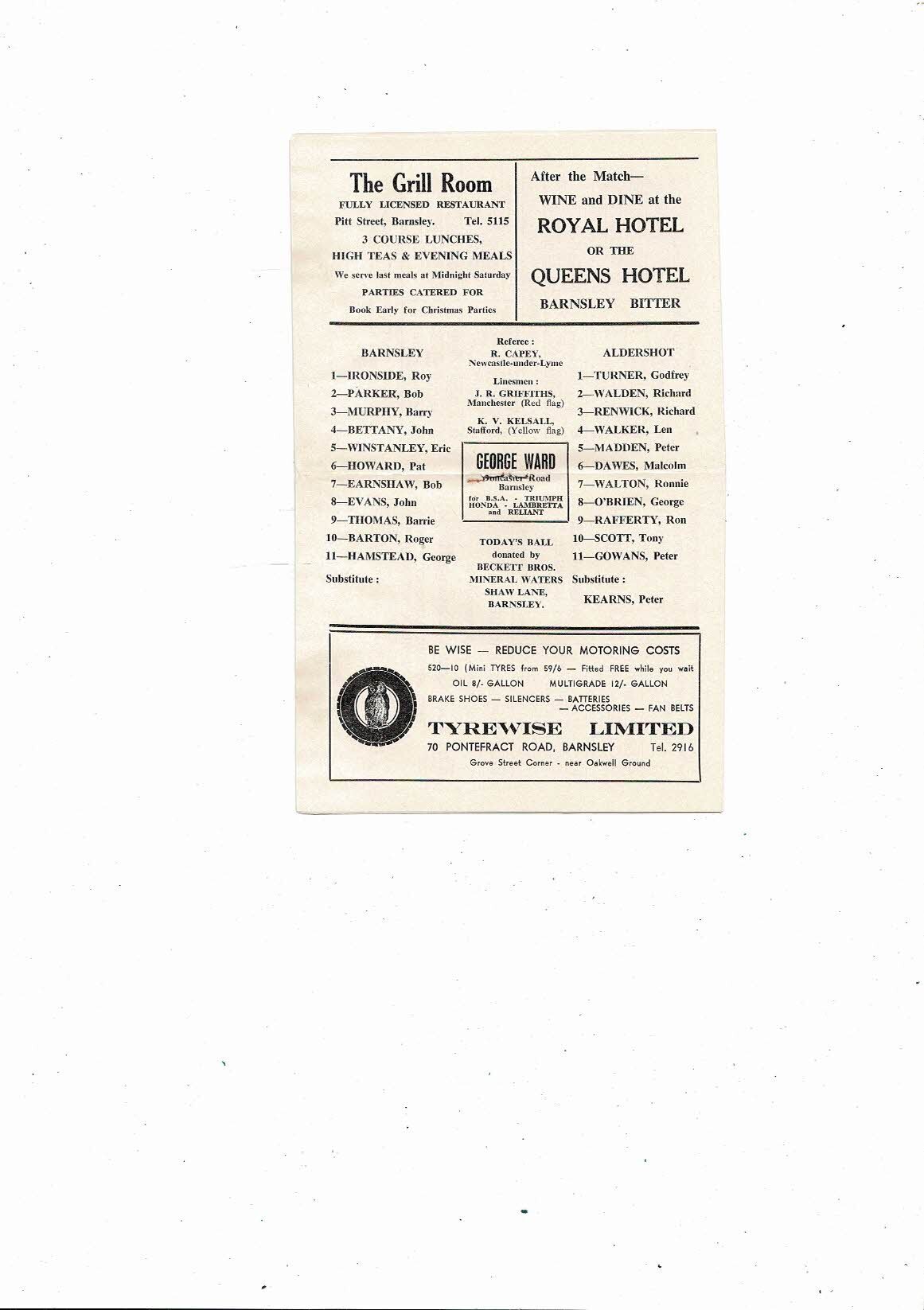 1967/68 Barnsley v Aldershot Football Programme