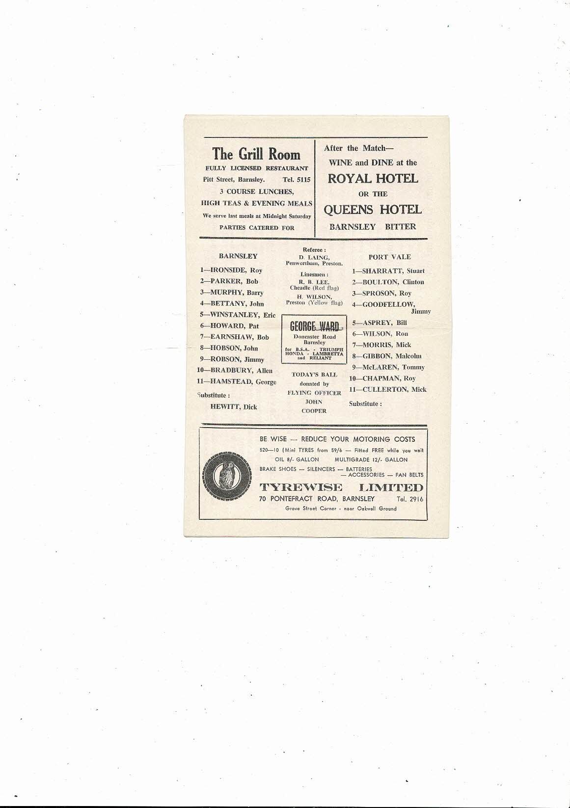 1967/68 Barnsley v Port Vale Football Programme