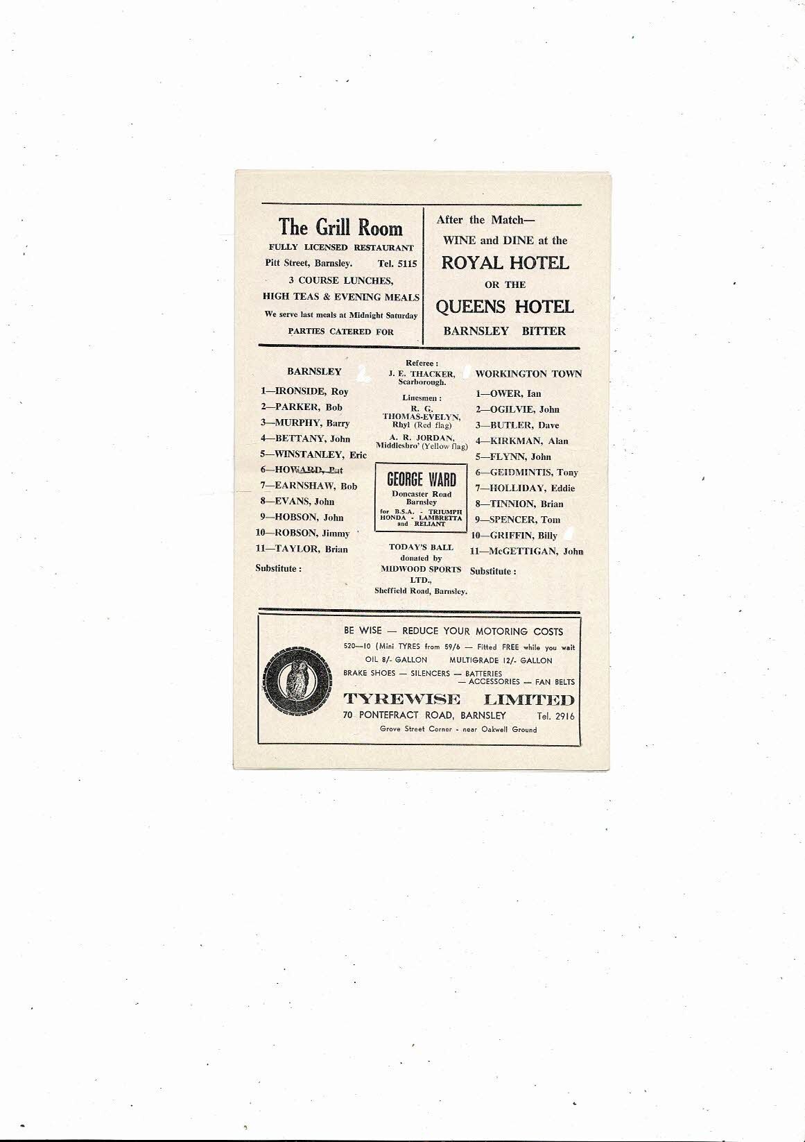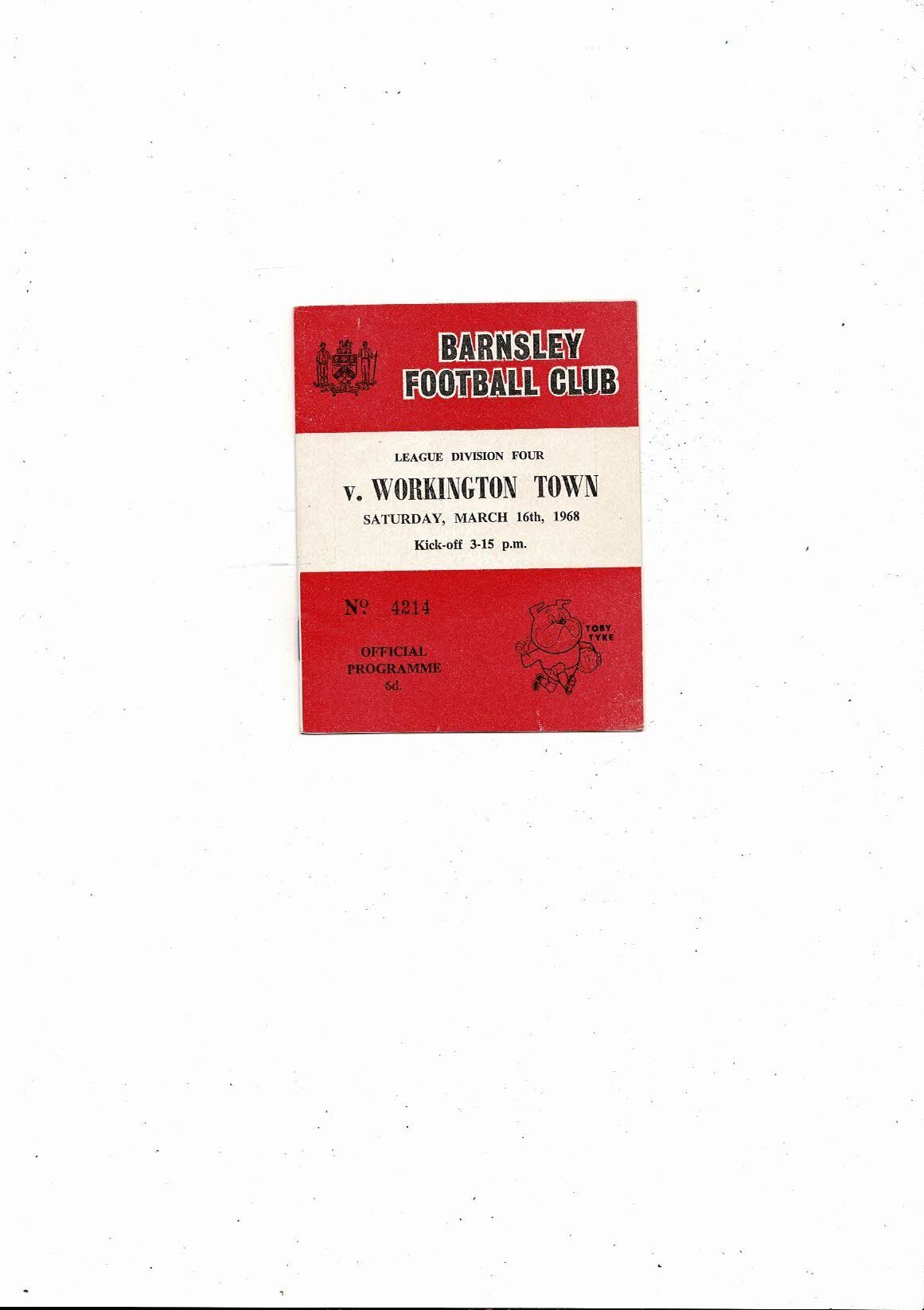 1967/68 Barnsley v Workington Football Programme