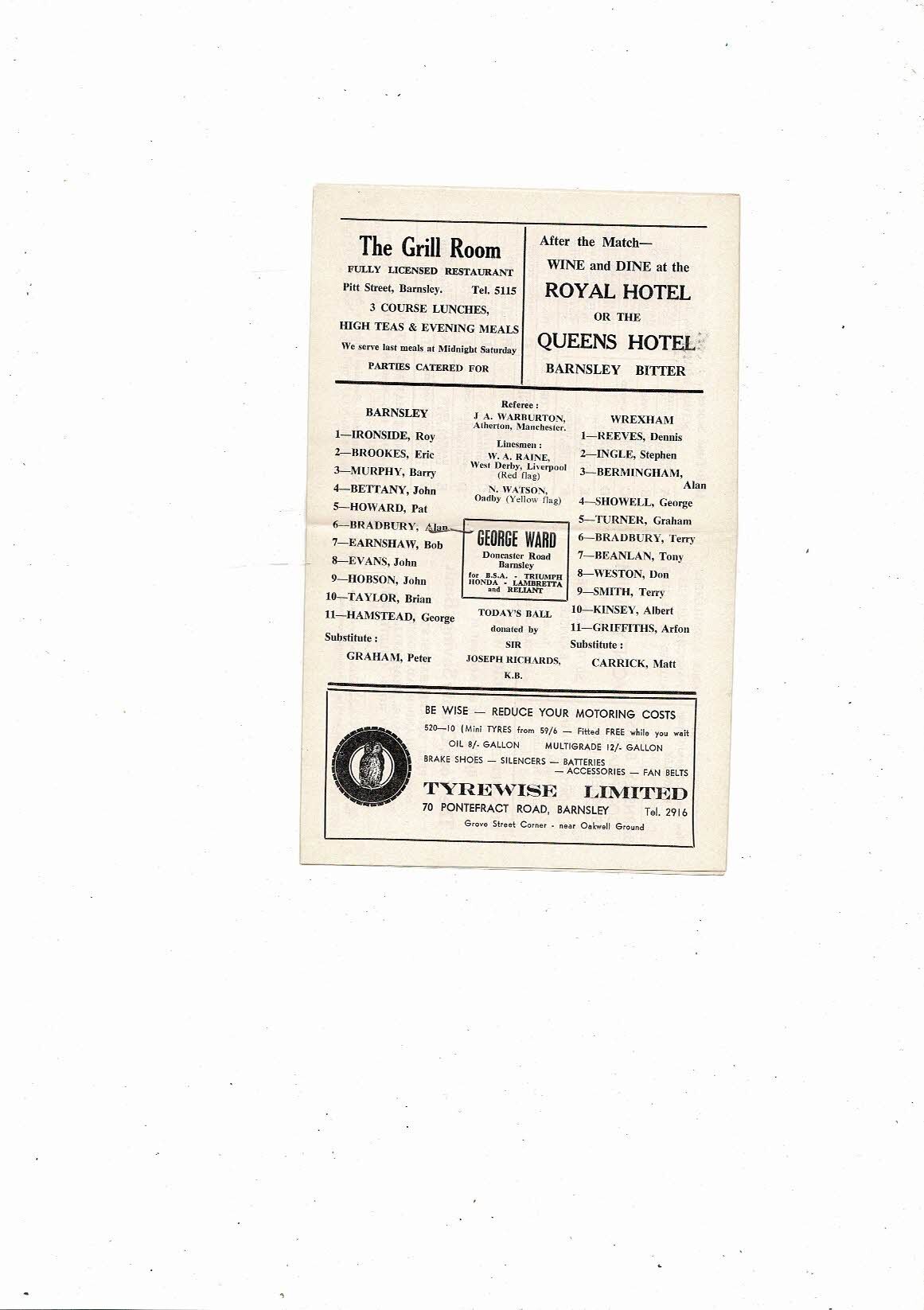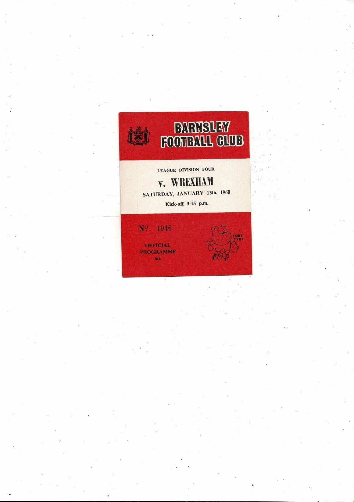 1967/68 Barnsley v Wrexham Football Programme January