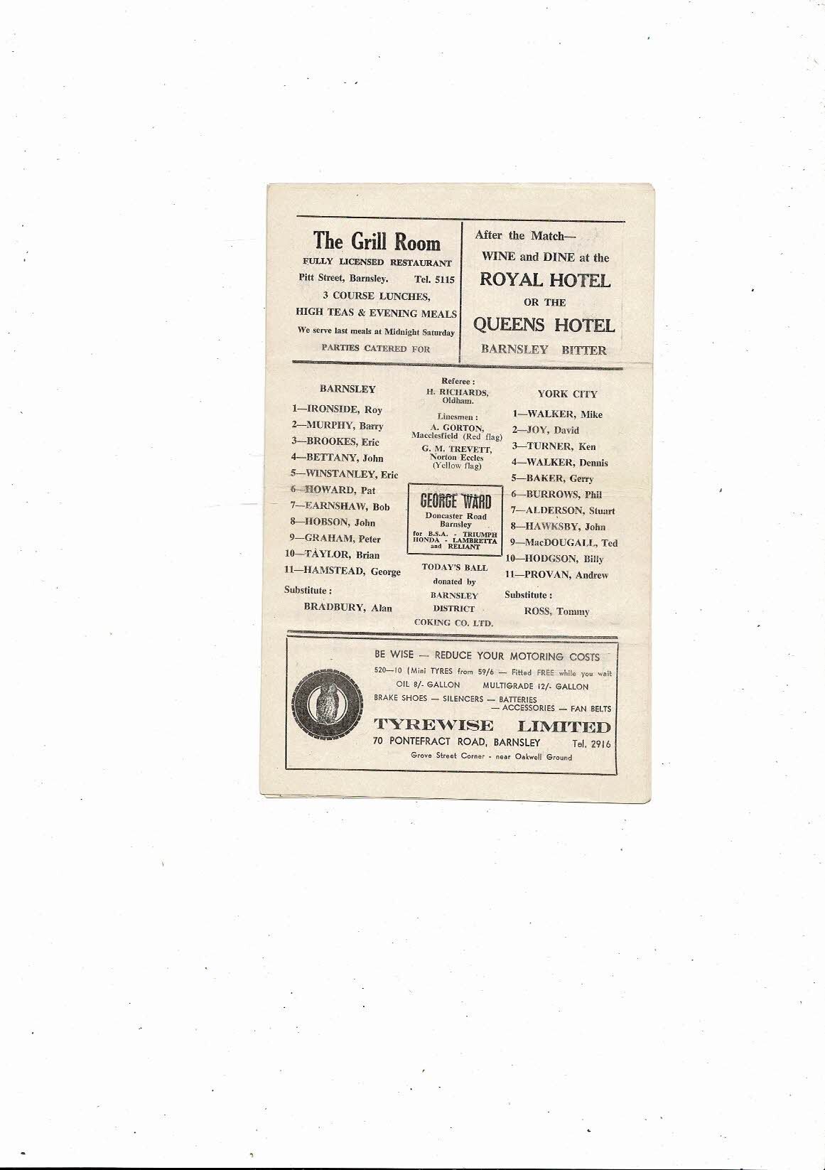 1967/68 Barnsley v York City Football Programme