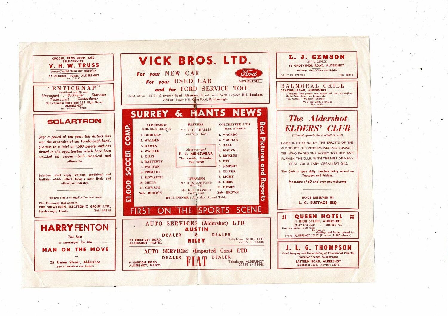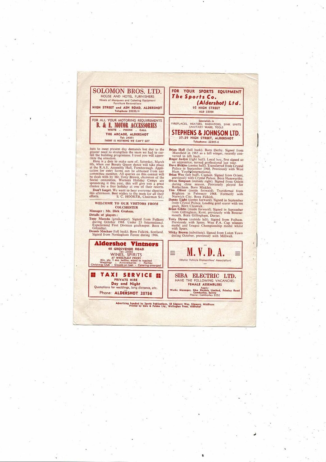 1968/69 Aldershot v Colchester United Football Programme 1st February
