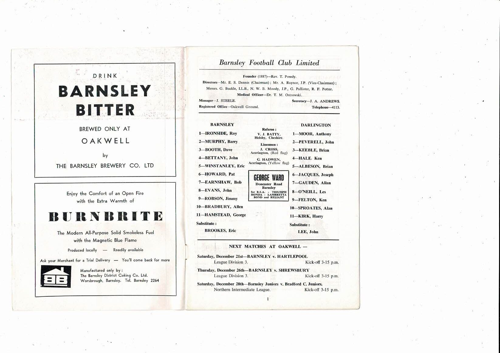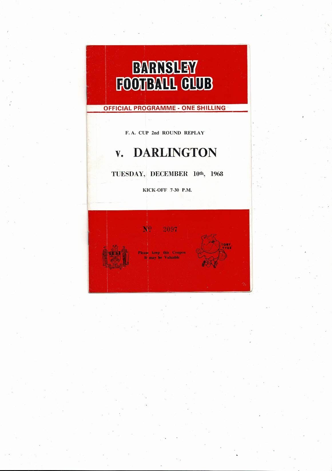 1968/69 Barnsley v Darlington FA Cup Replay Football Programme