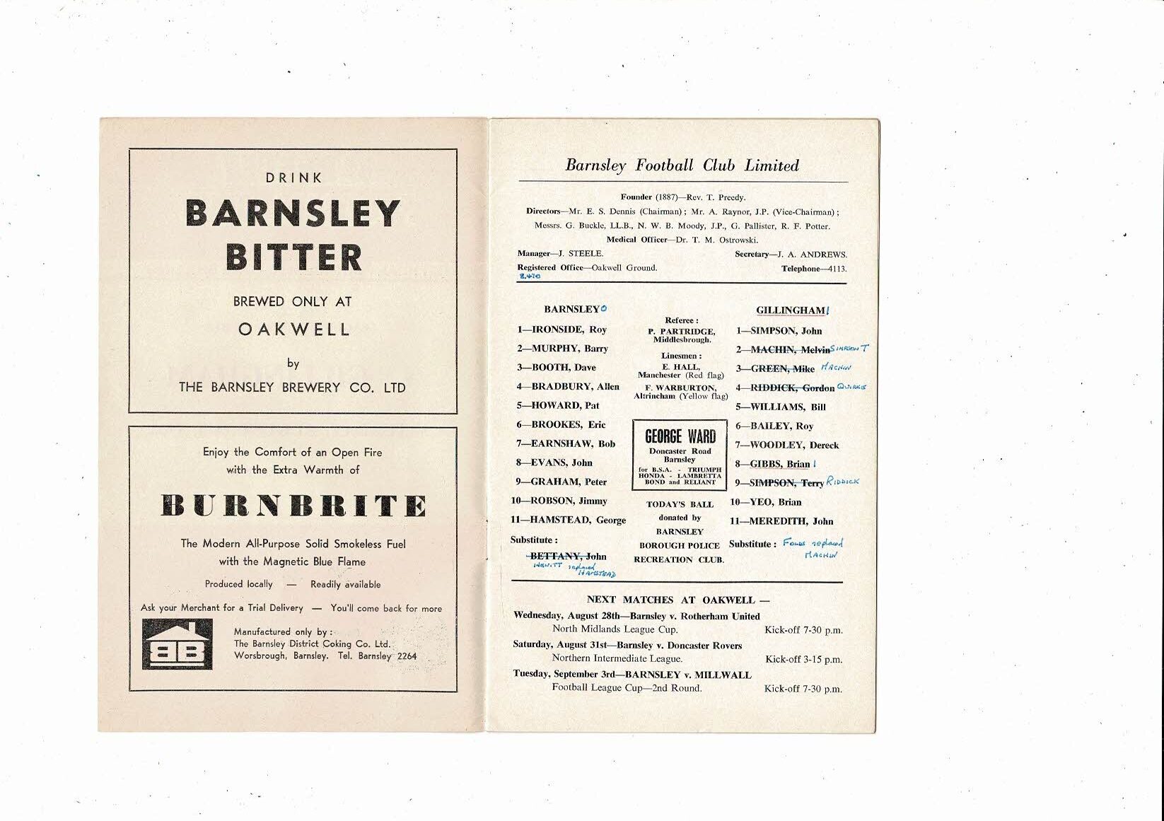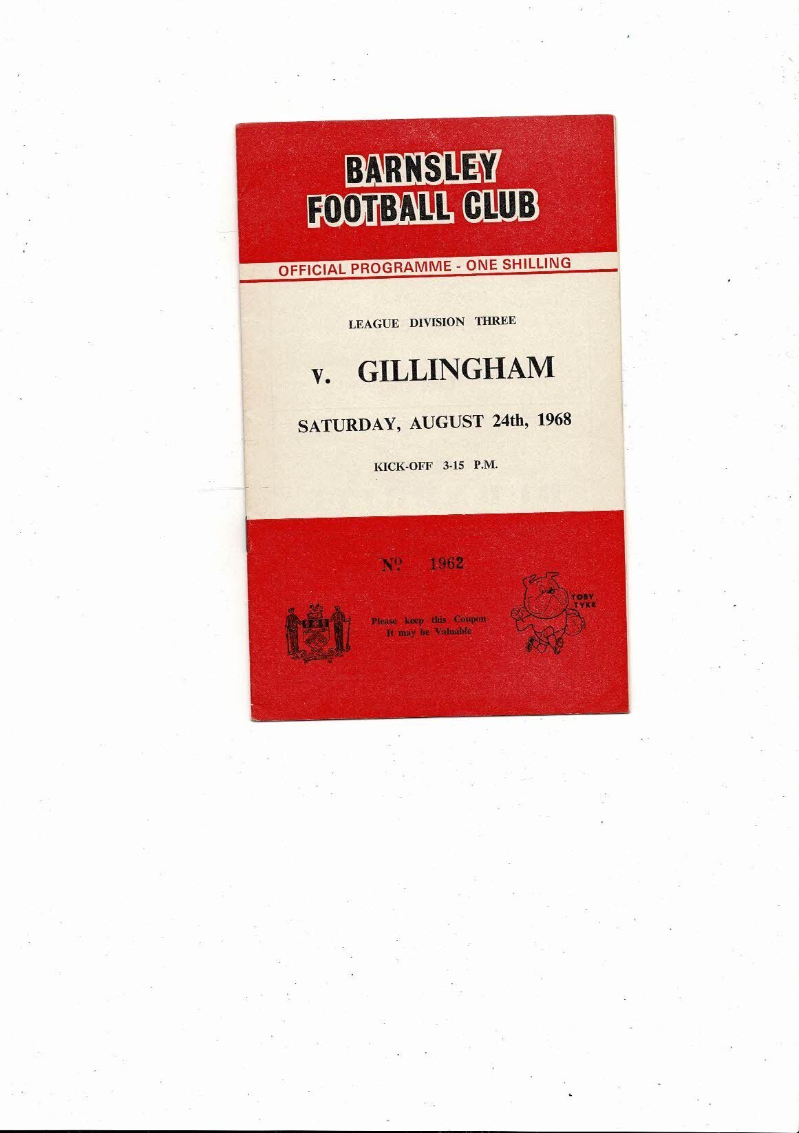 1968/69 Barnsley v Gillingham Football Programme