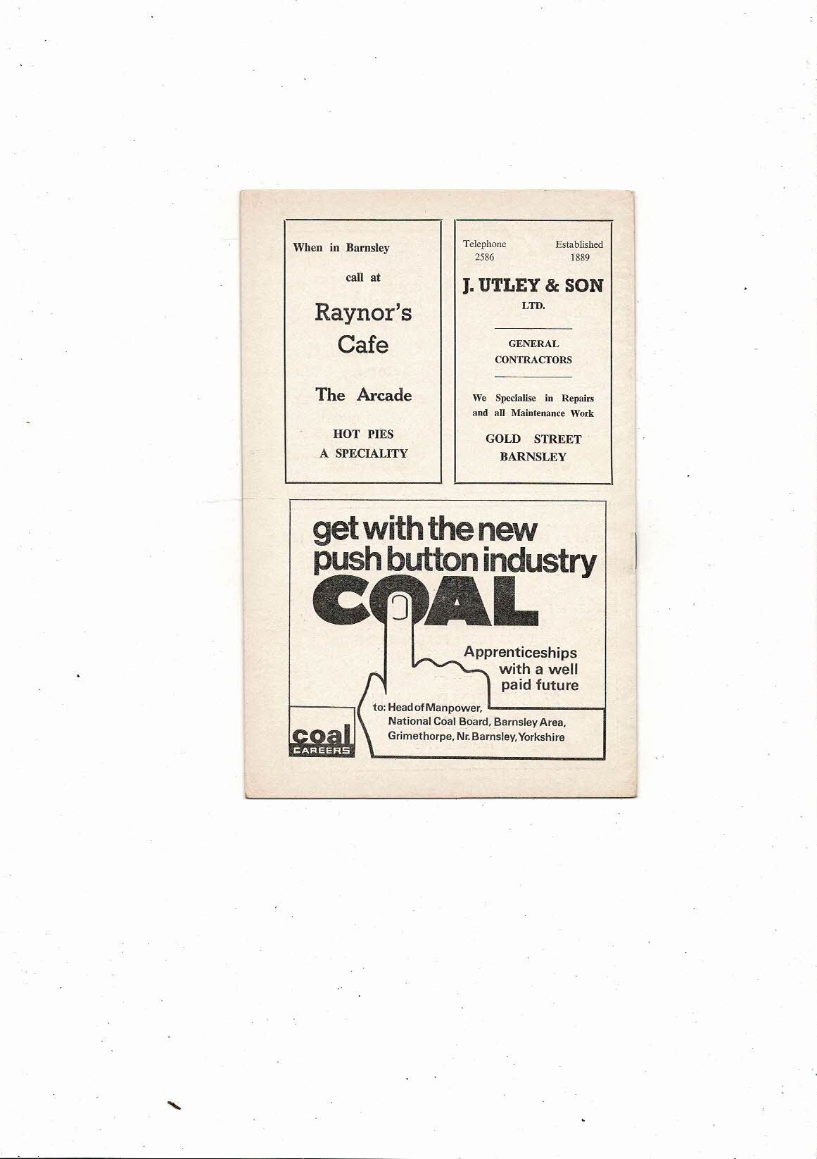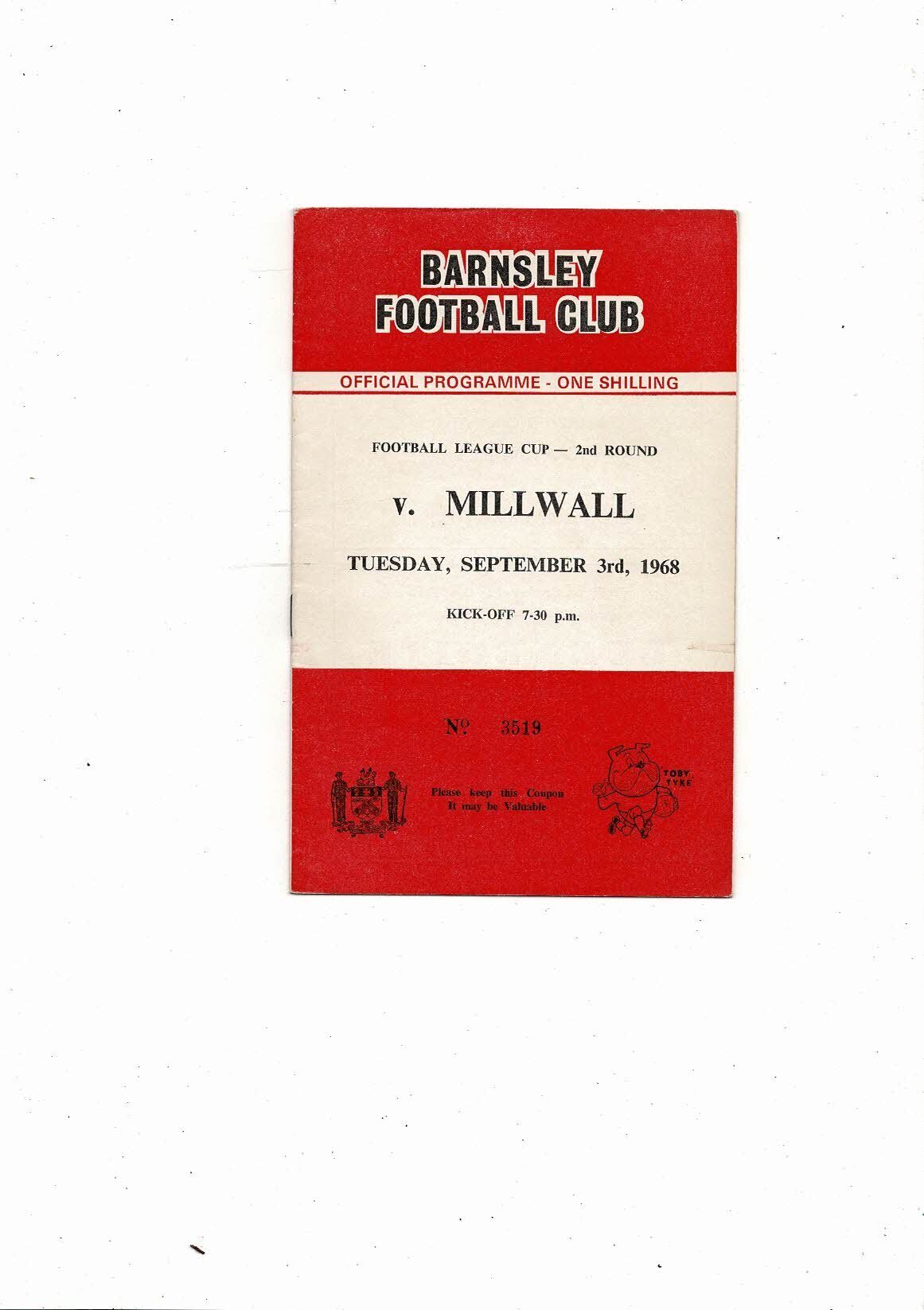 1968/69 Barnsley v Millwall League Cup Football Programme