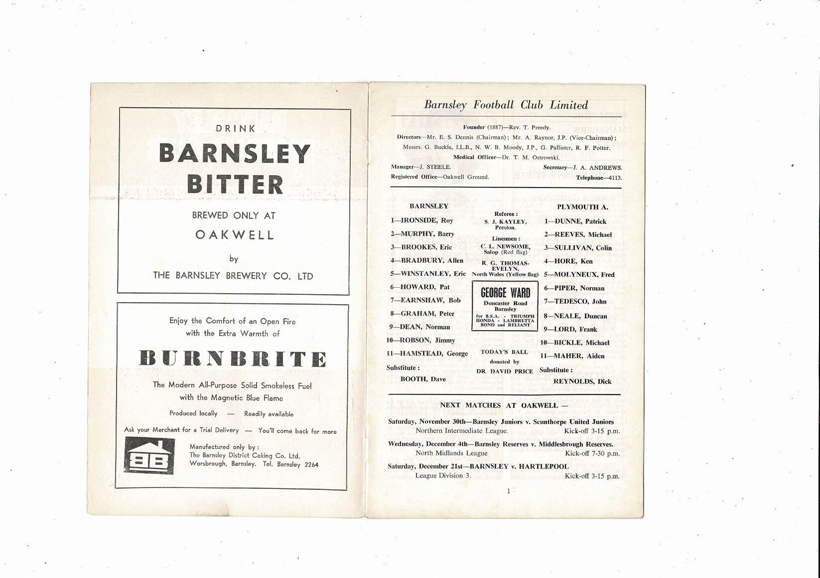 1968/69 Barnsley v Plymouth Argyle Football Programme