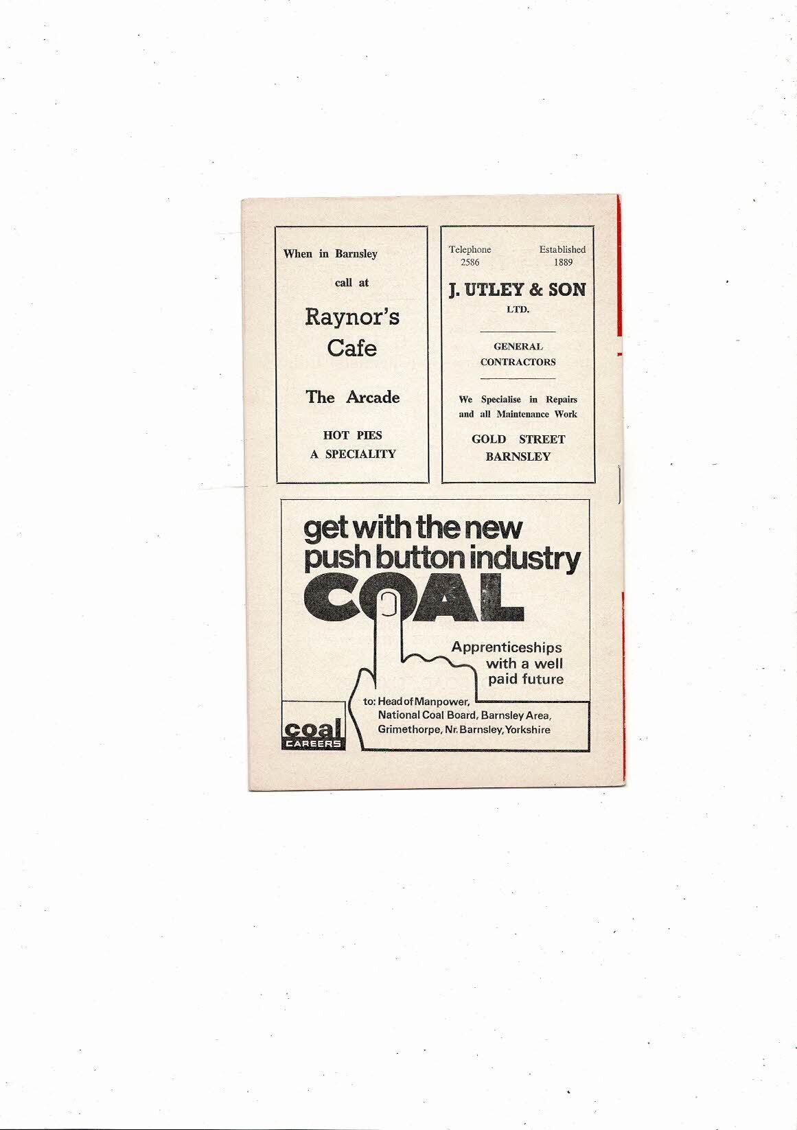 1968/69 Barnsley v Walsall Football Programme