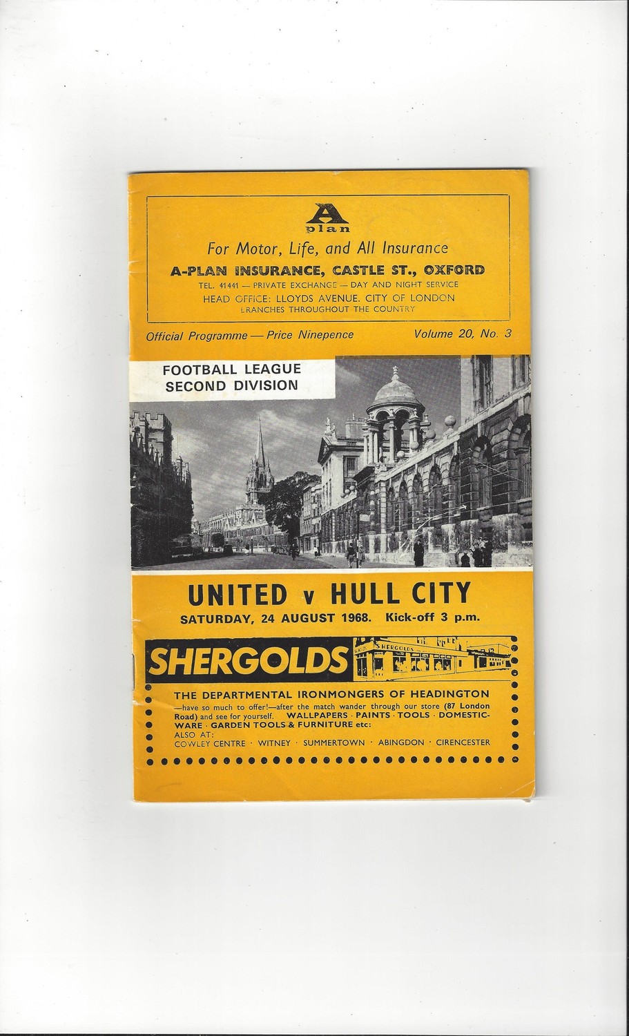 1968/69 Oxford United v Hull City Football Programme + League Review