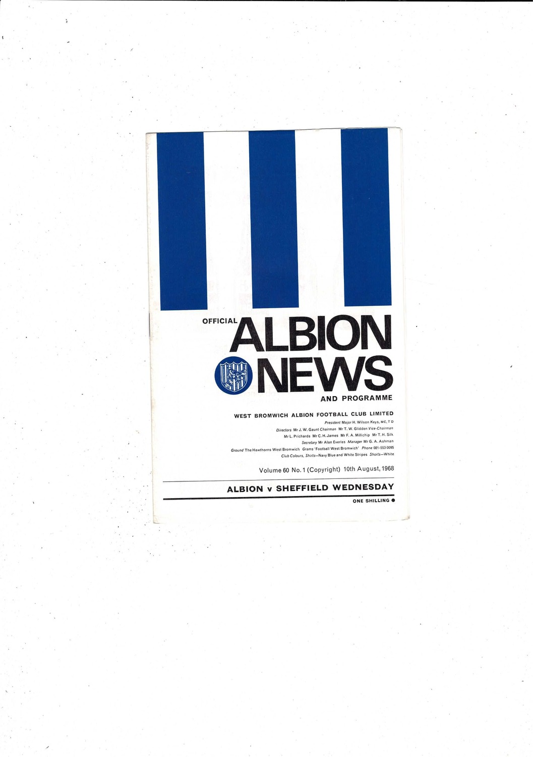 1968/69 West Bromwich Albion v Sheffield Wednesday Football Programme + League Review