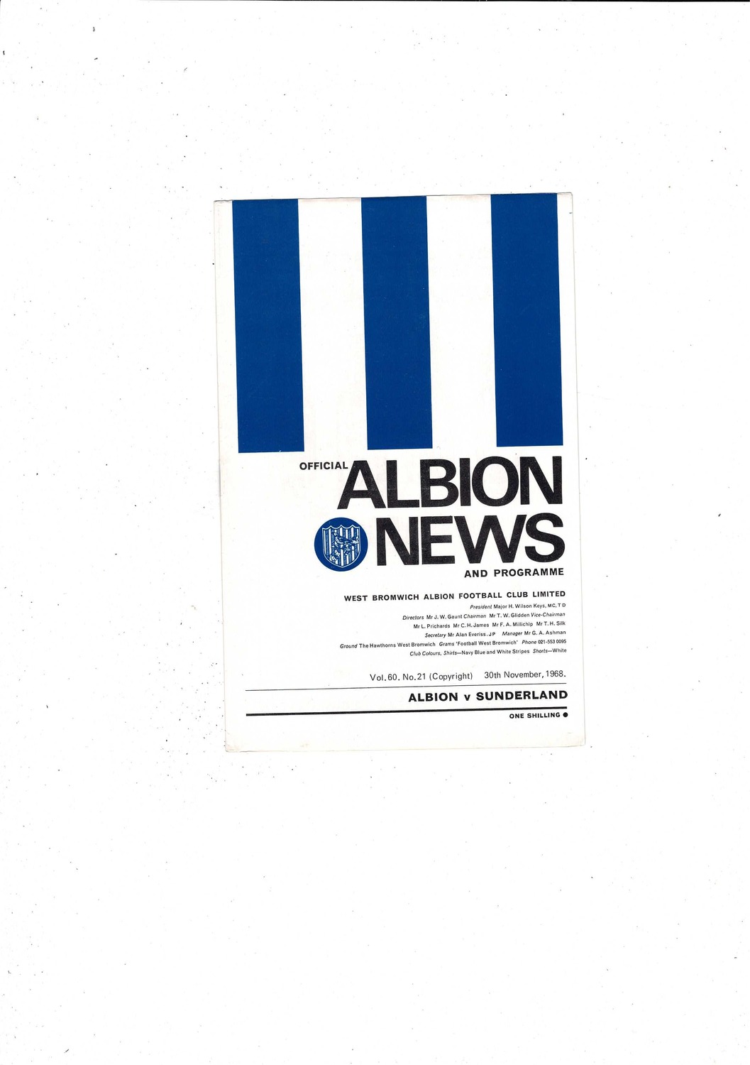 1968/69 West Bromwich Albion v Sunderland Football Programme