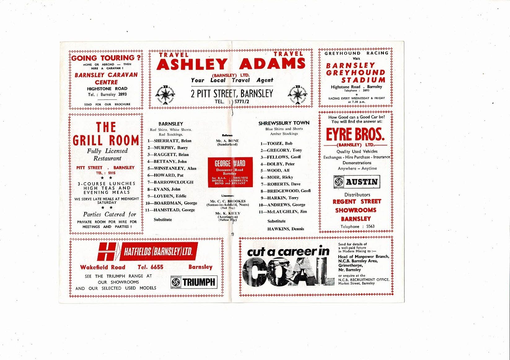 1969/70 Barnsley v Shrewsbury Town Football Programme