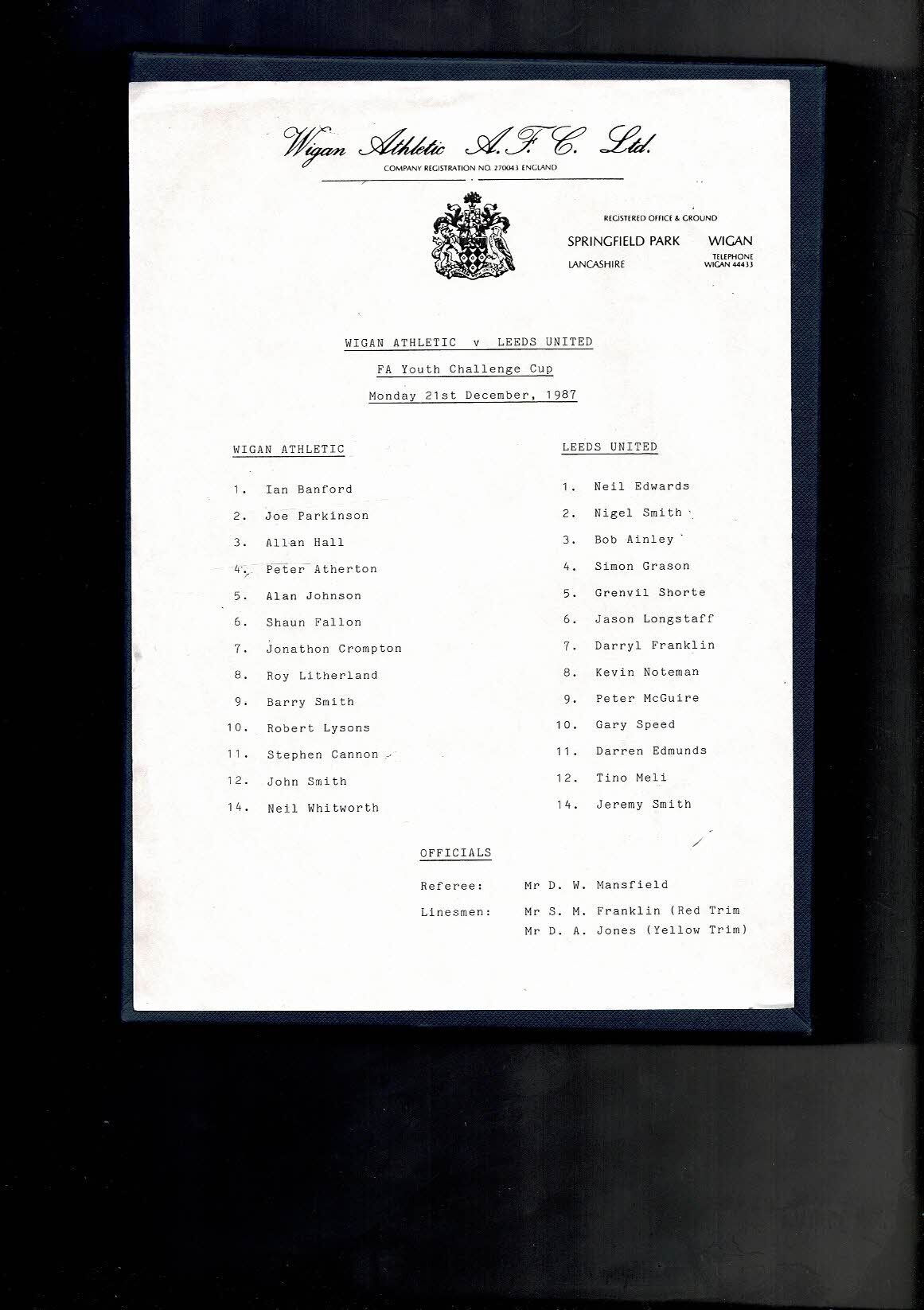 1987/88 Wigan Athletic v Leeds United FA Youth Cup Football Programme