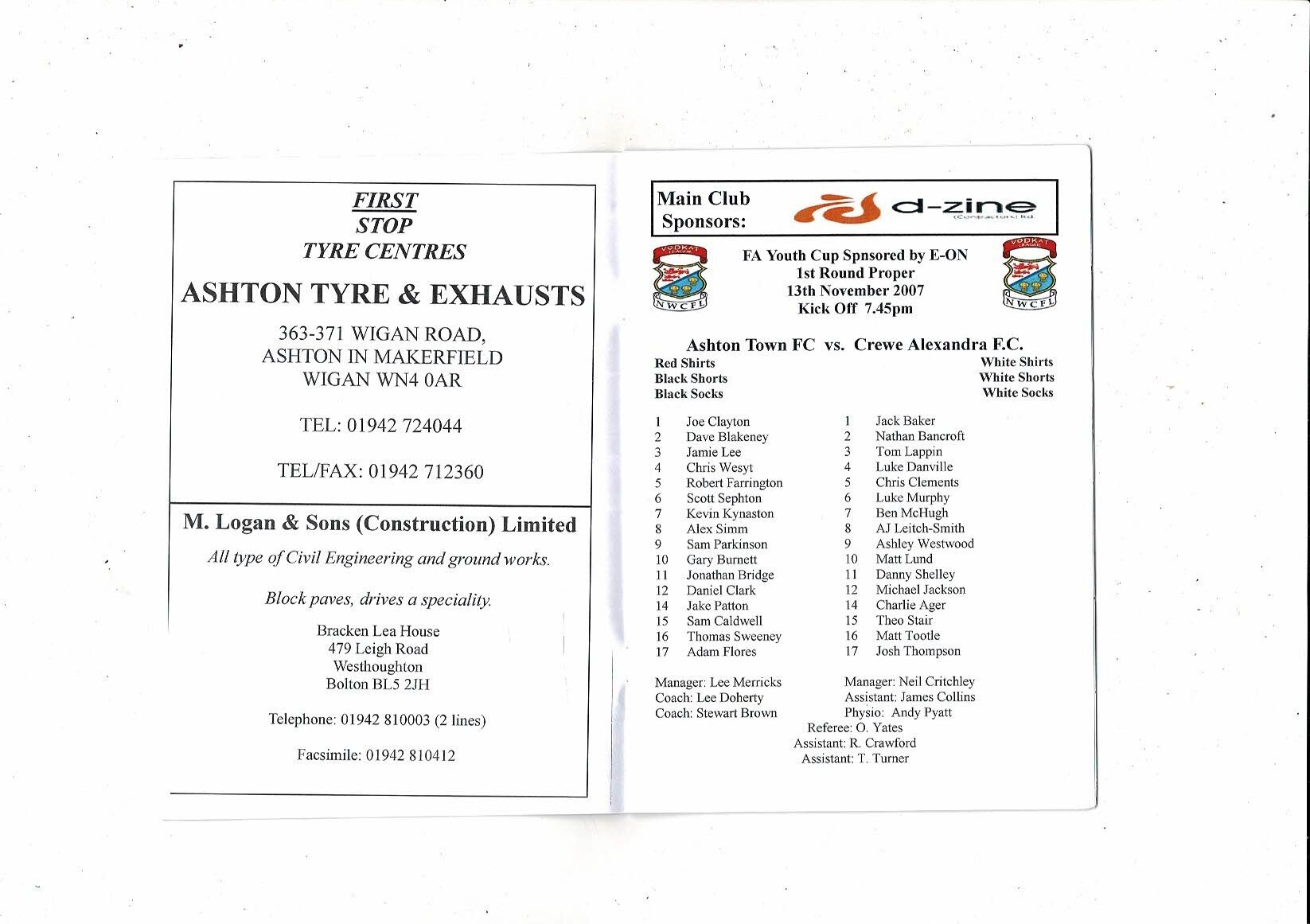 Ashton Town v Crewe FA Youth Cup Football Programme 2007/08
