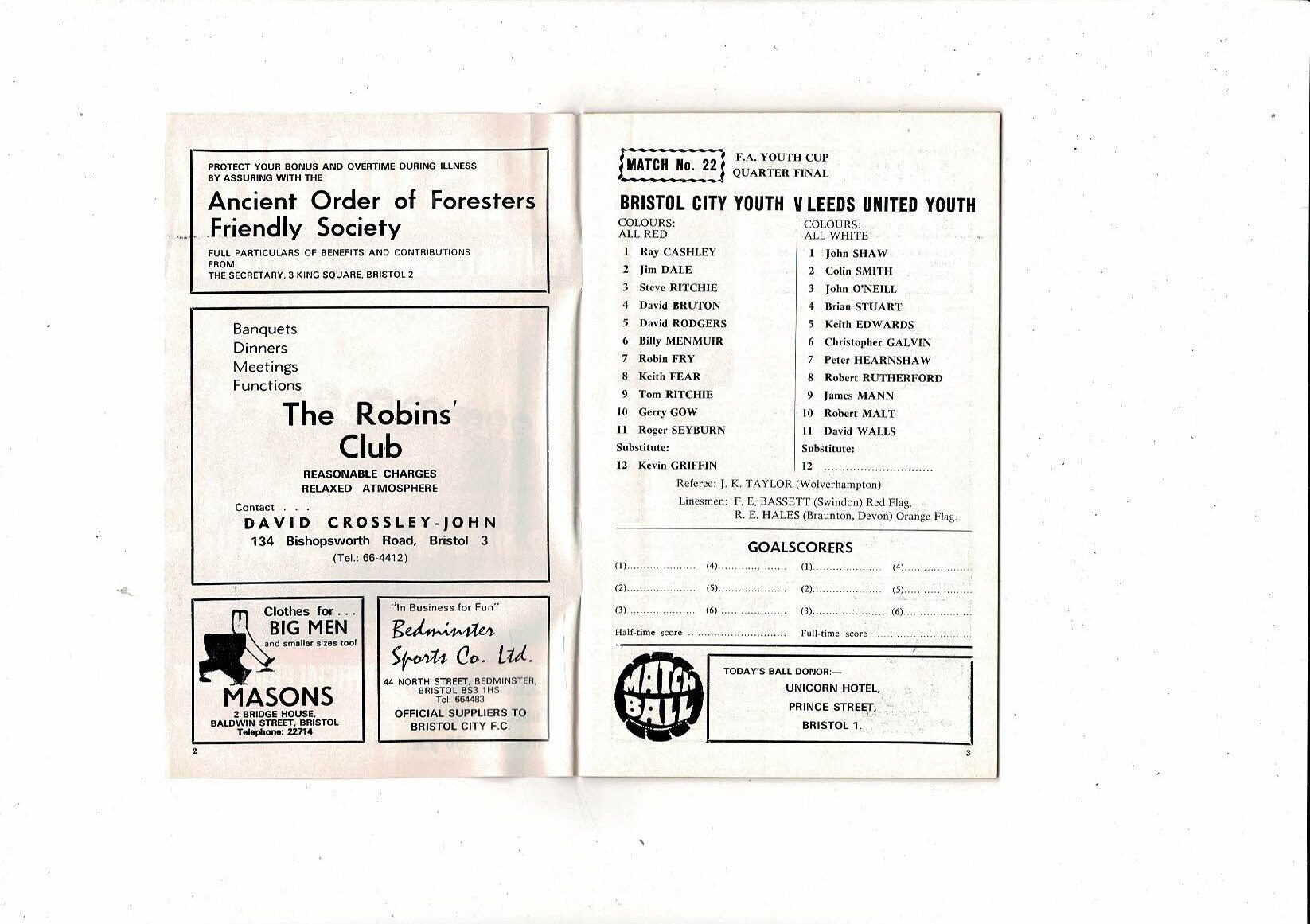 Bristol City v Leeds United FA Youth Cup Football Programme 1969/70