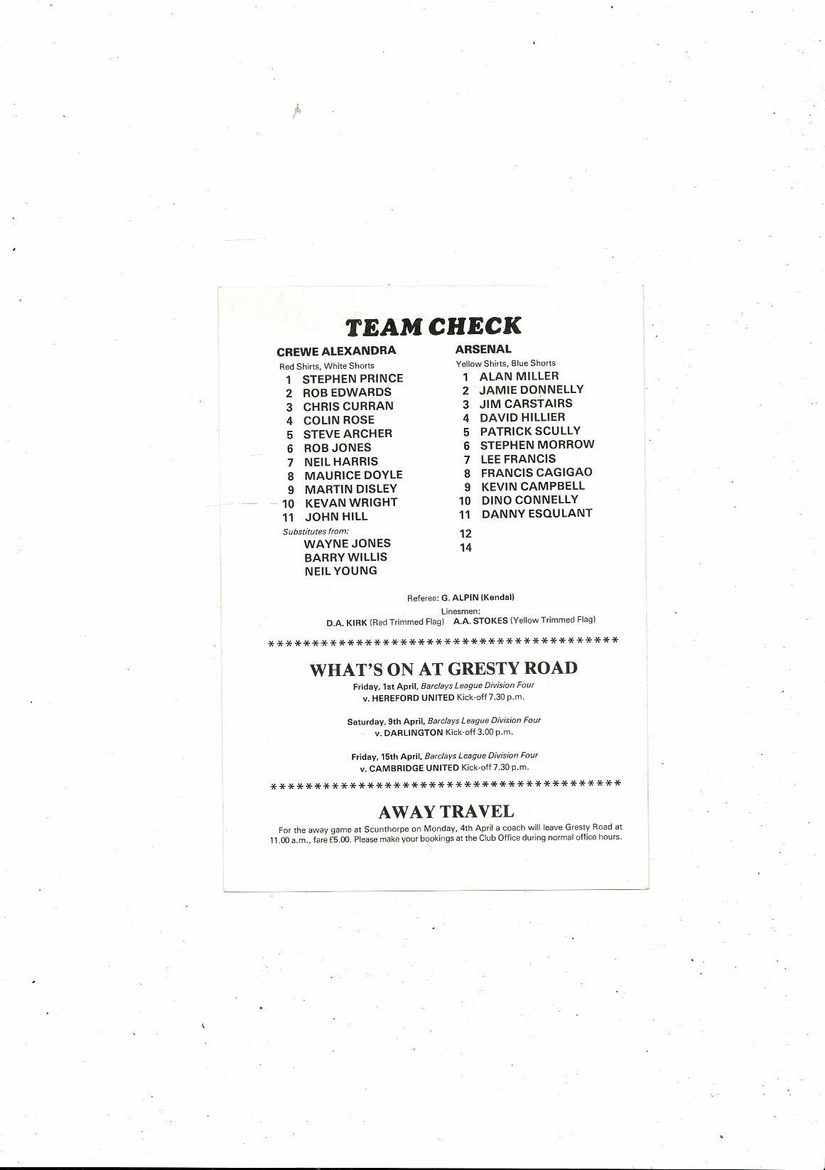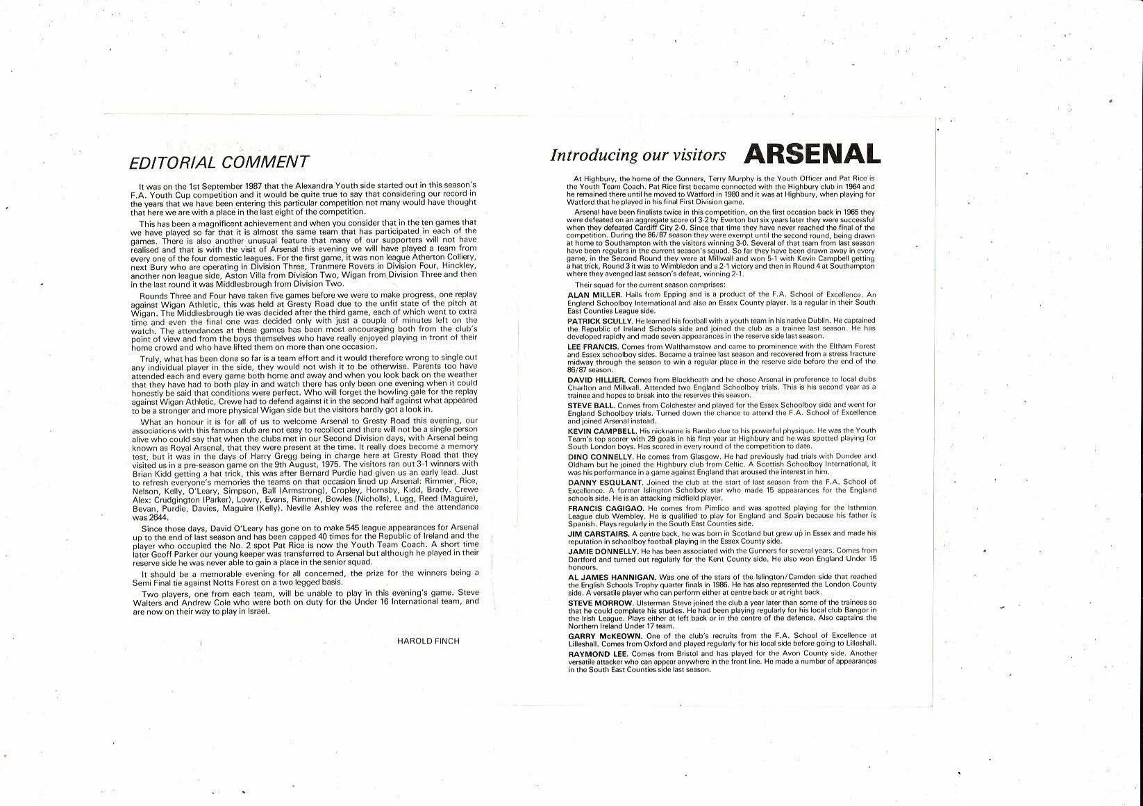 Crewe Alexandra v Arsenal FA Youth Cup Football Programme 1987/88