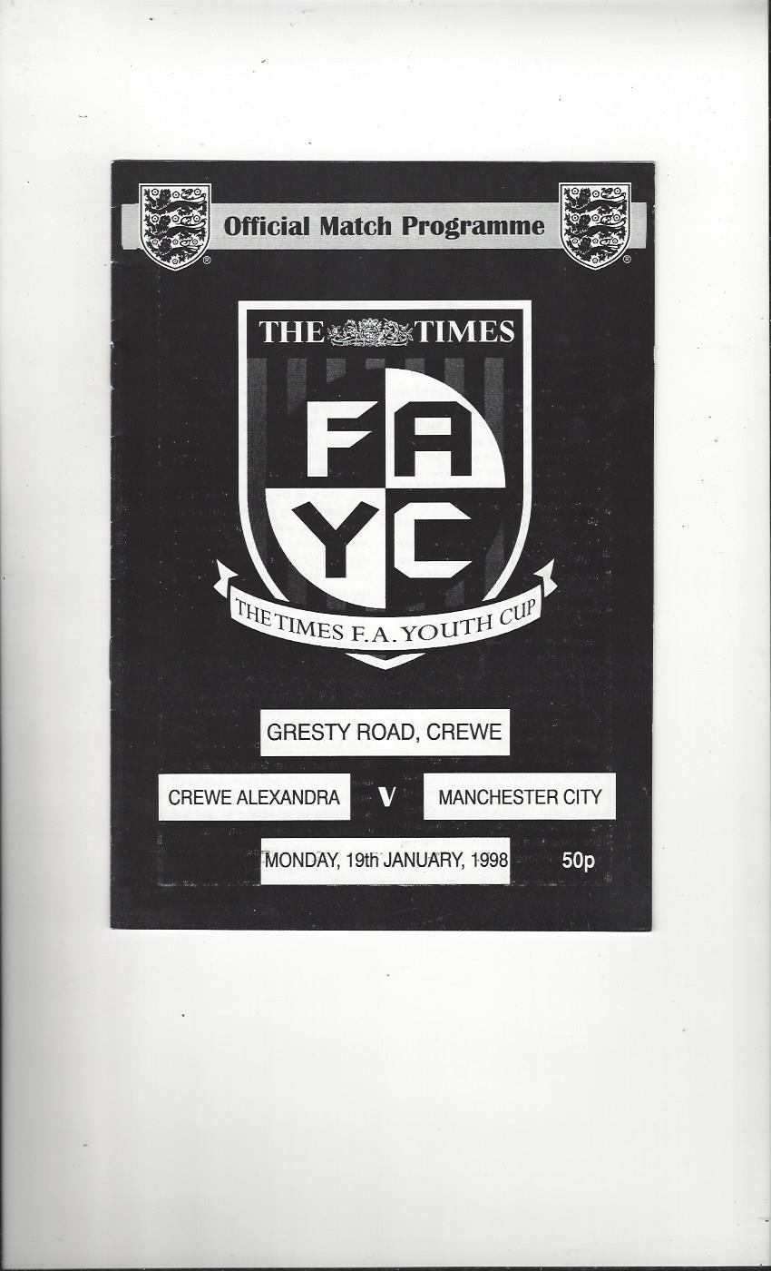 Crewe Alexandra v Manchester City FA Youth Cup Football Programme 1997/98
