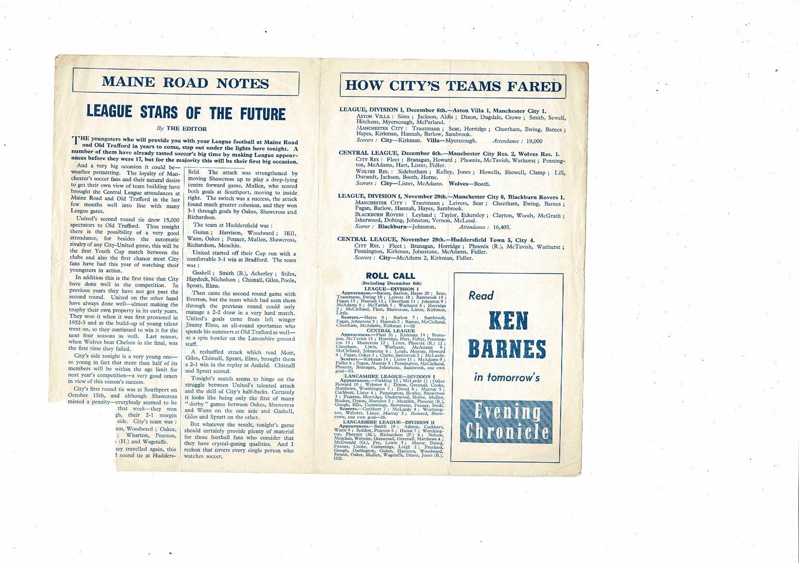 Manchester City v Manchester United FA Youth Cup Football Programme 1958/59