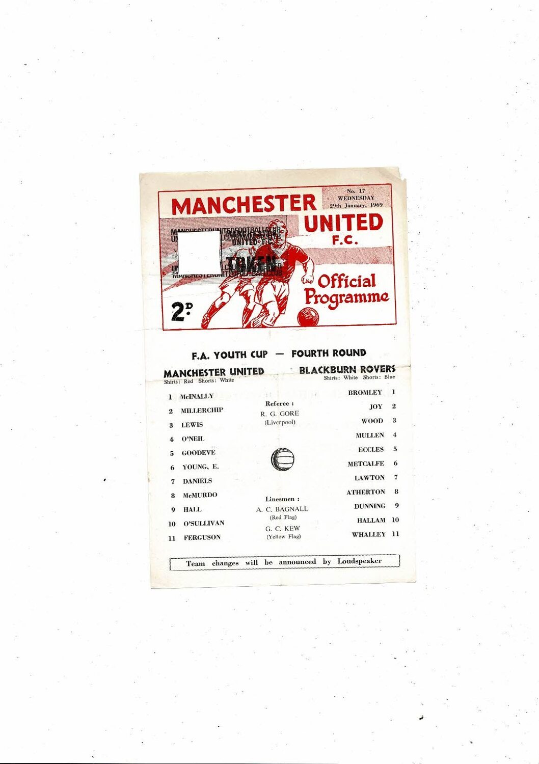 Manchester United v Blackburn FA Youth Cup Football Programme 1968/69