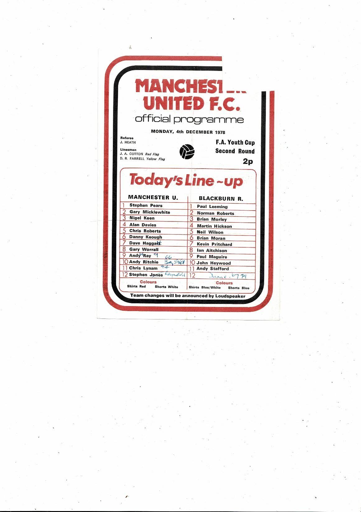Manchester United v Blackburn Rovers FA Youth Cup Football Programme 1978/79