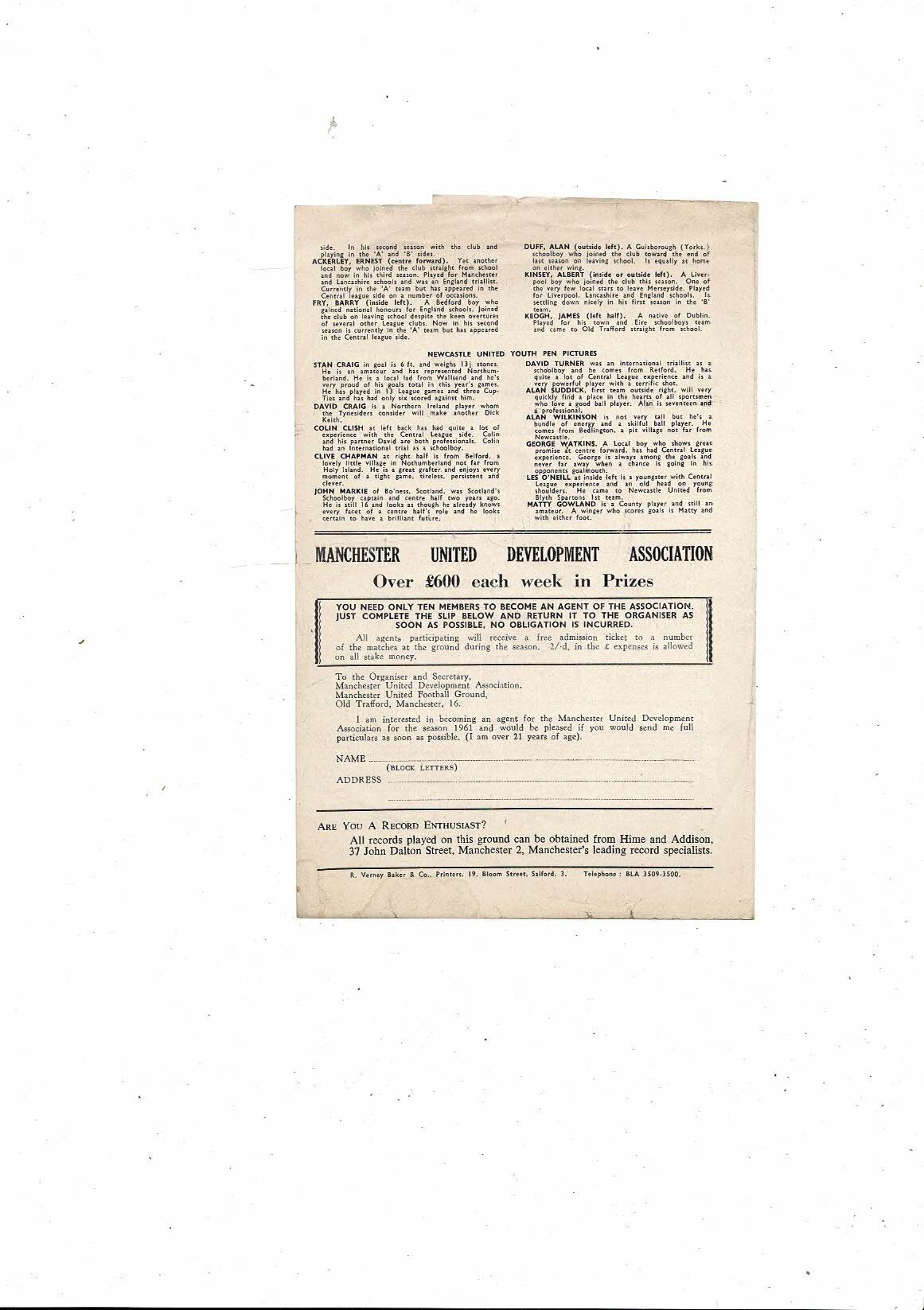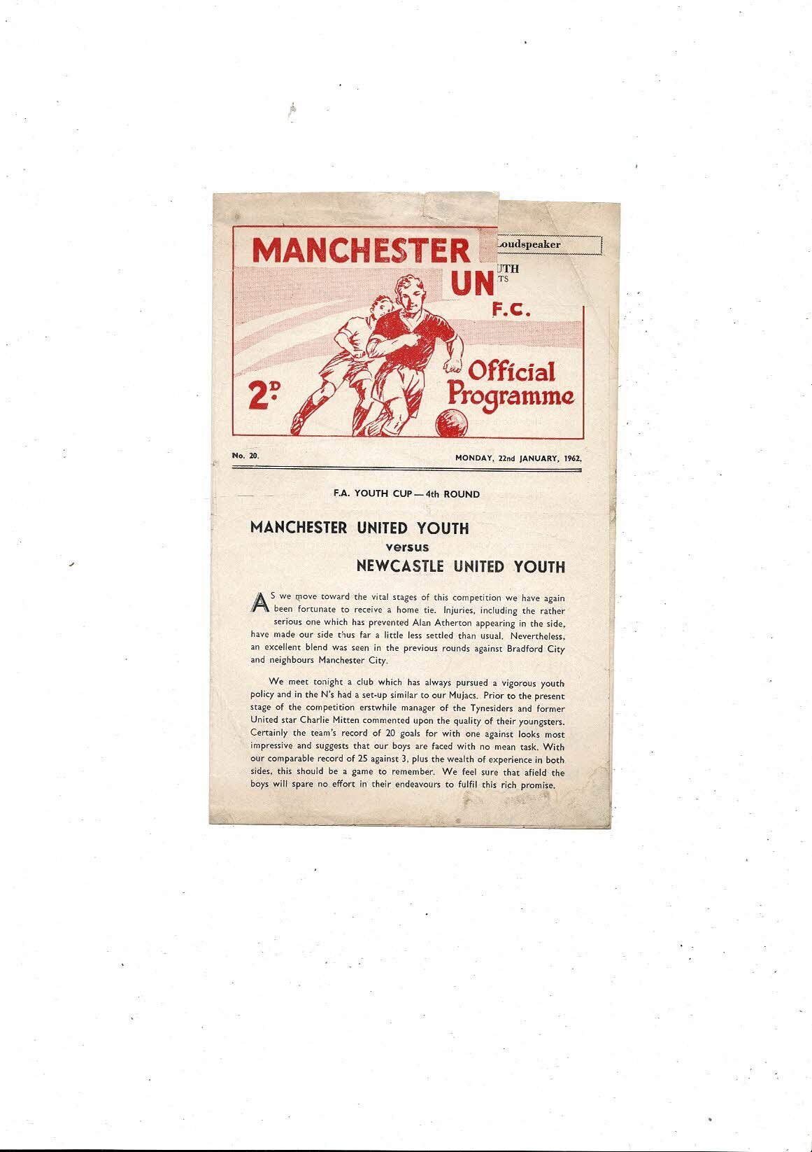 Manchester United v Newcastle United FA Youth Cup Football Programme 1961/62