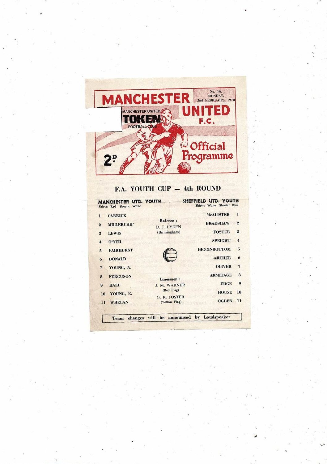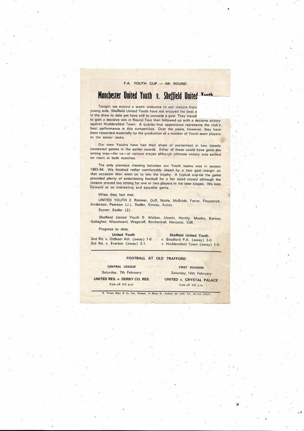 Manchester United v Sheffield United FA Youth Cup Football Programme 1969/70