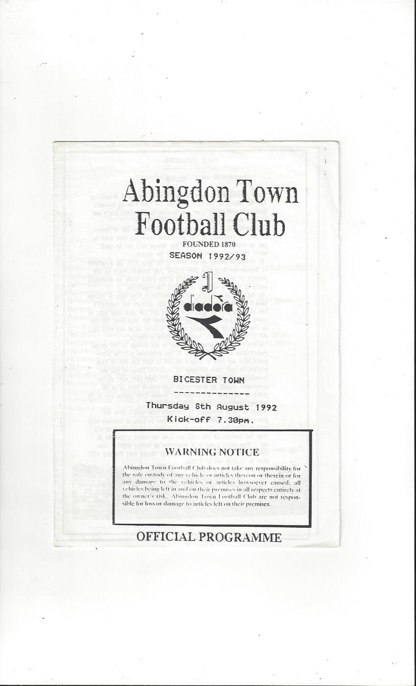 Abingdon Town v Bicester Town Friendly Football Programme 1992/93