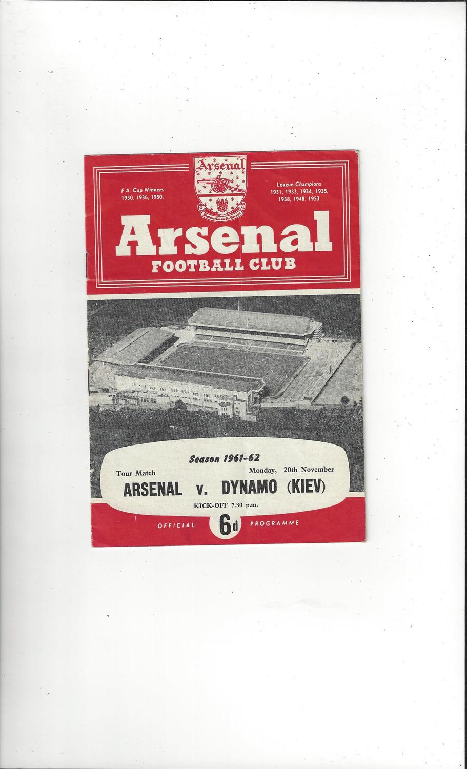 Arsenal v Dynamo Kiev Friendly Football Programme 1961/62