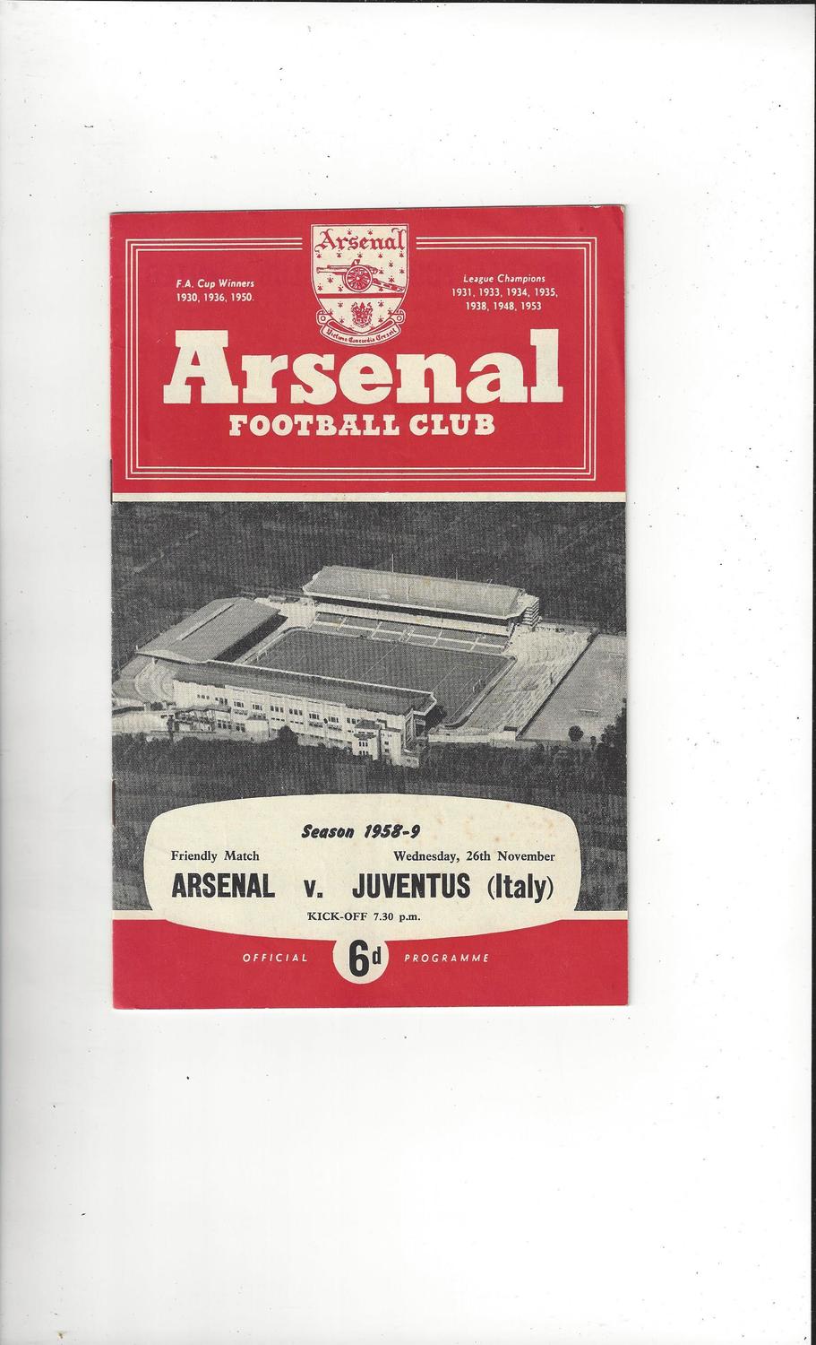 Arsenal v Juventus Friendly Football Programme 1958/59