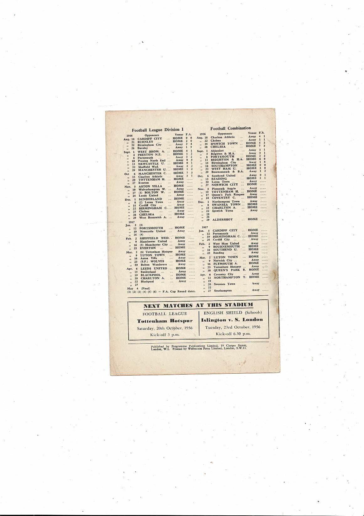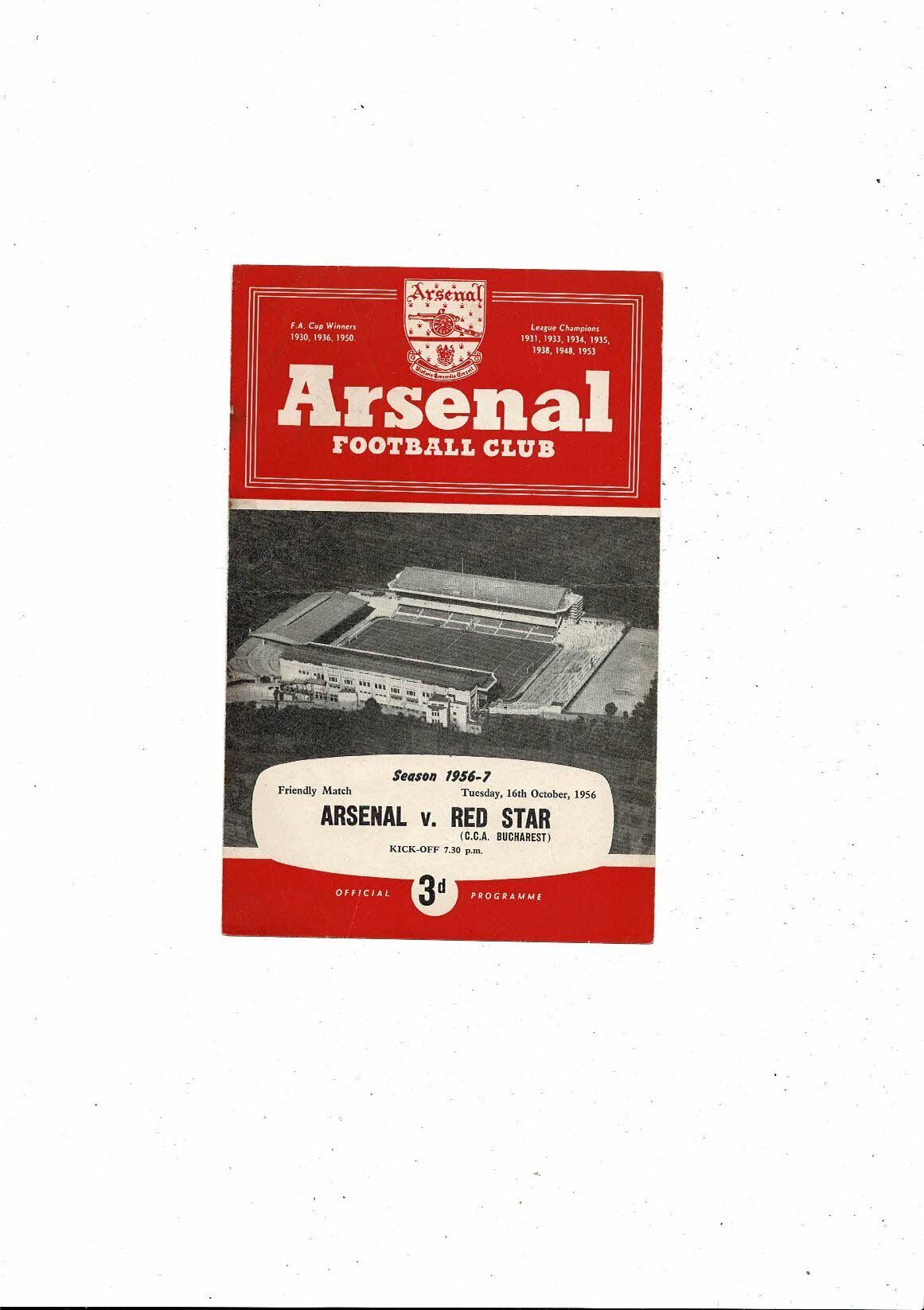 Arsenal v Red Star Friendly Football Programme 1956/57