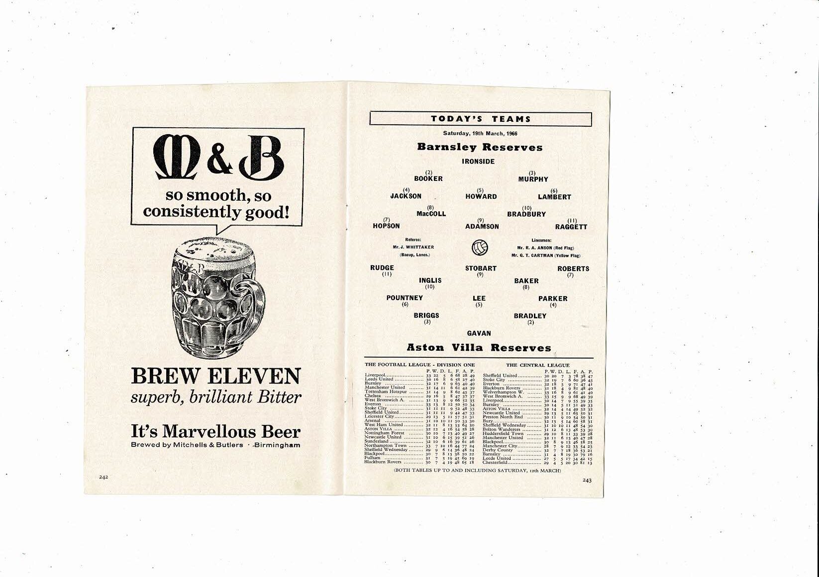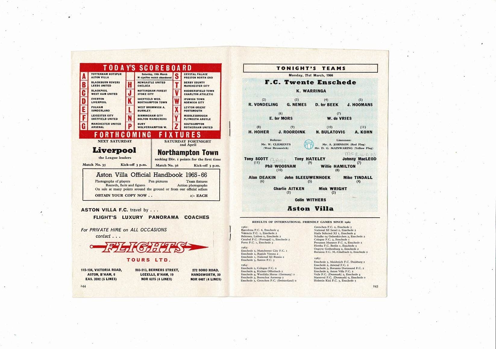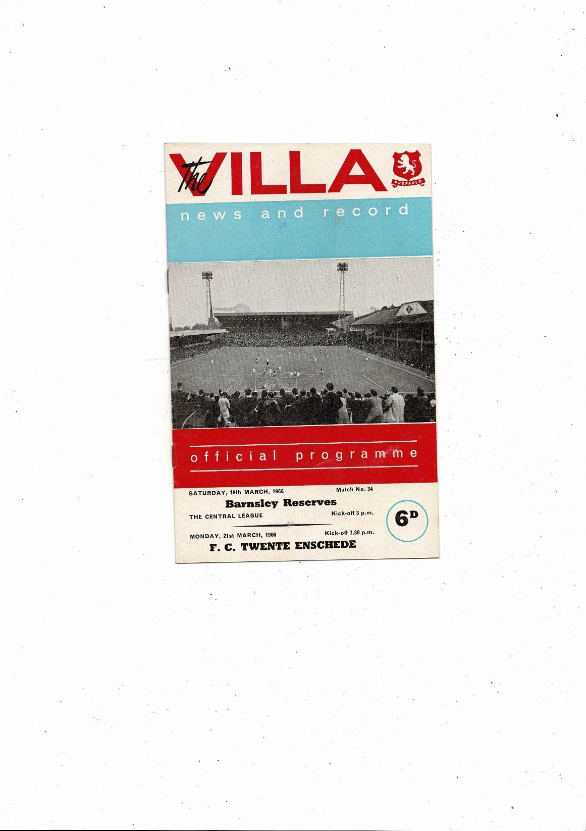 Aston Villa v F.C Twente Friendly & Barnsley Reserve Football Programme 1965/66