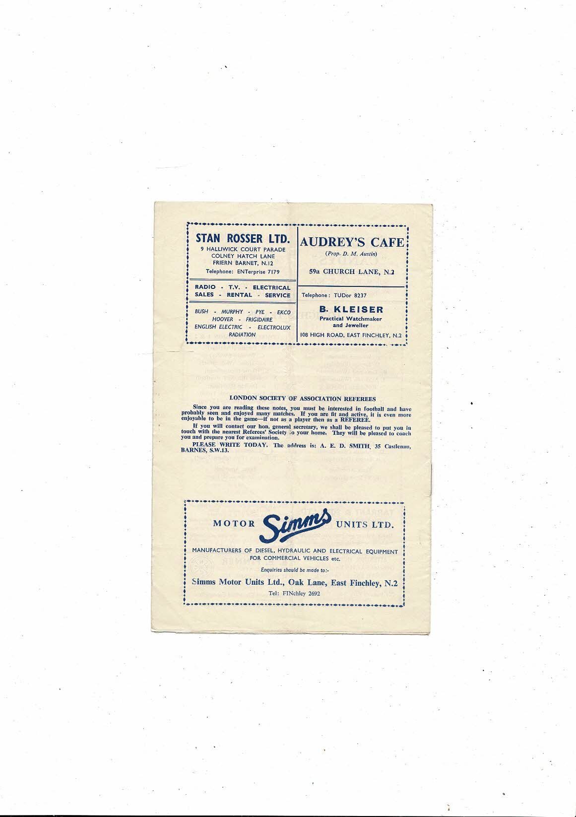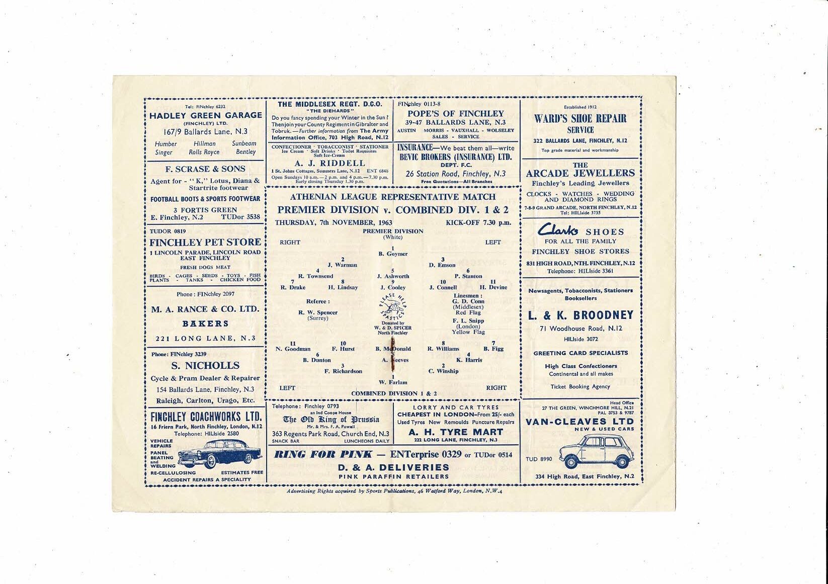 Athenian Premier Div v Combined Div 1 & 2 Friendly Football Programme 1963/64