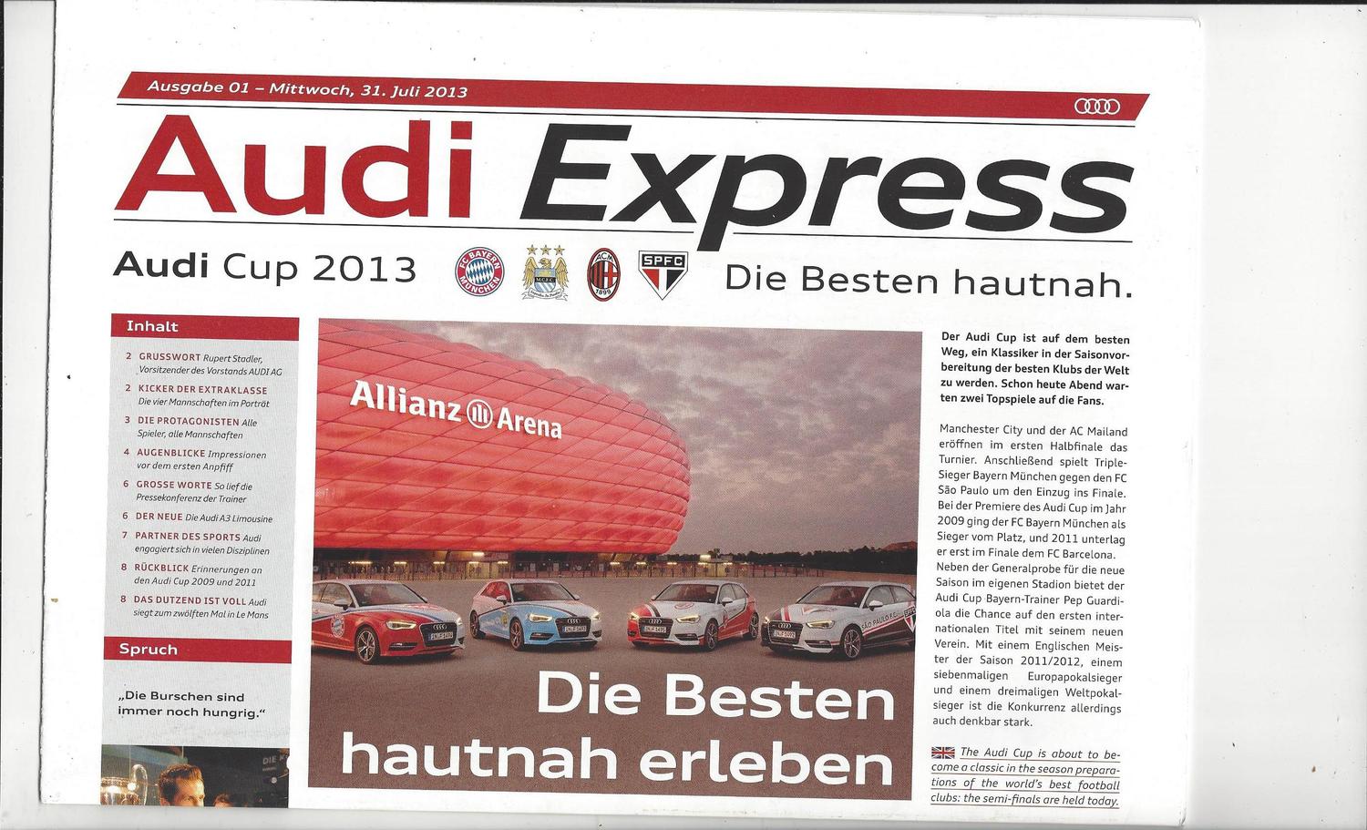 Audi Cup Bayern Munich, Manchester City, AC Milan, FC Sao Paulo 2013 - 31st July