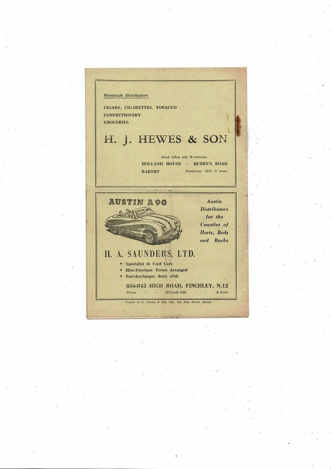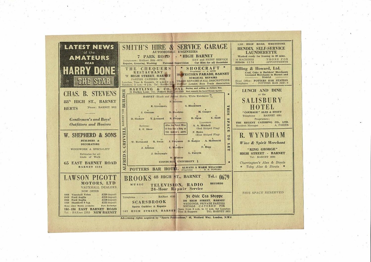 Barnet v Edinburgh University Friendly Football Programme 1951/52