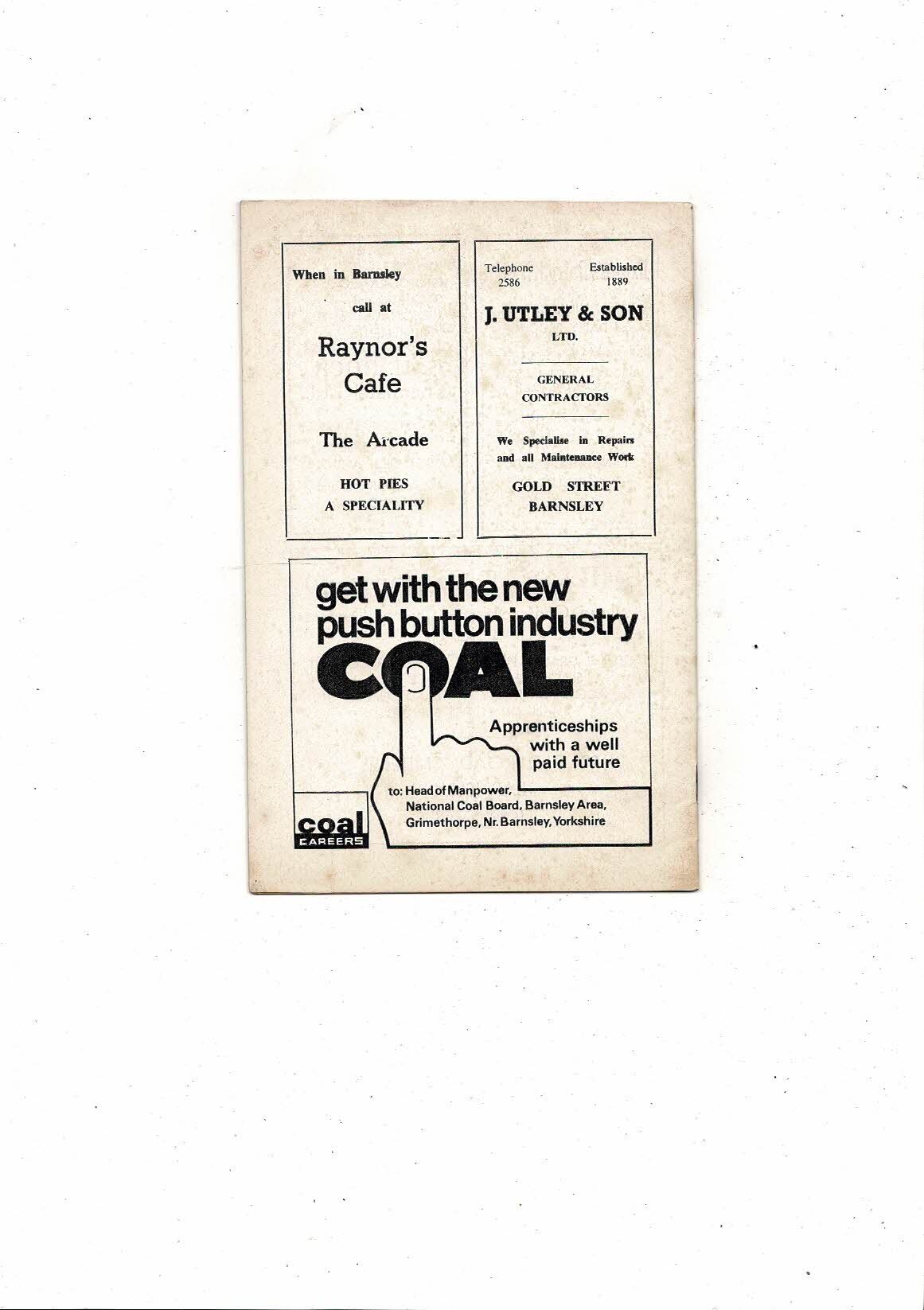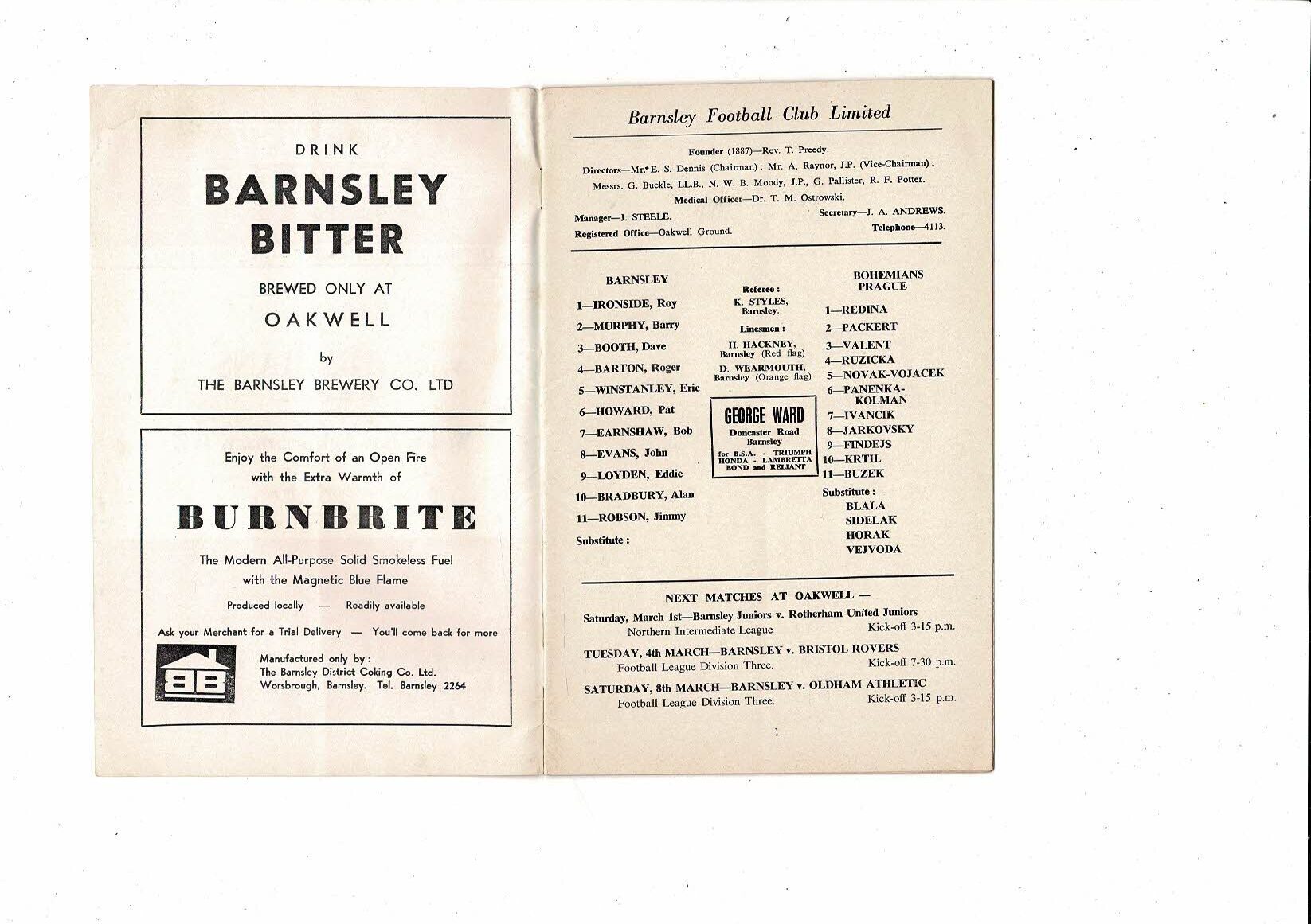 Barnsley v Bohemians Friendly Football Programme 1968/69