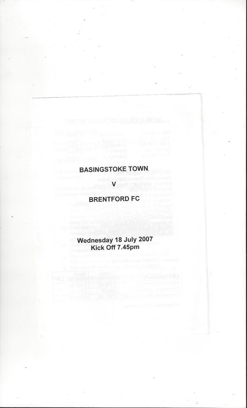 Basingstoke Town v Brentford Friendly Football Programme 2007/08